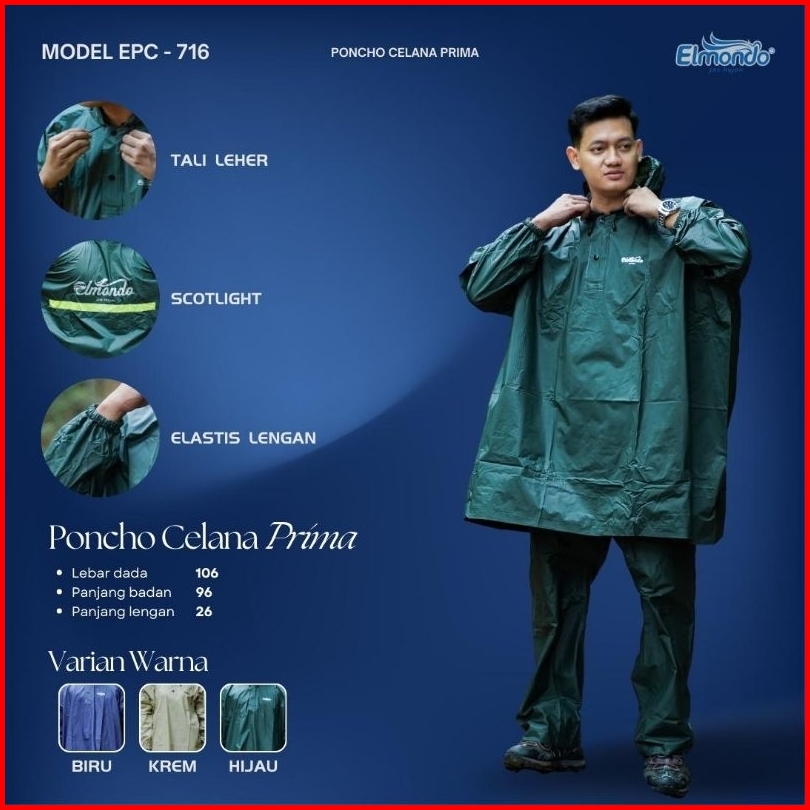 Jas Hujan Elmondo Bahan Pvc Setelan Ponco Maksimal Bb 95kg Siap Kirim