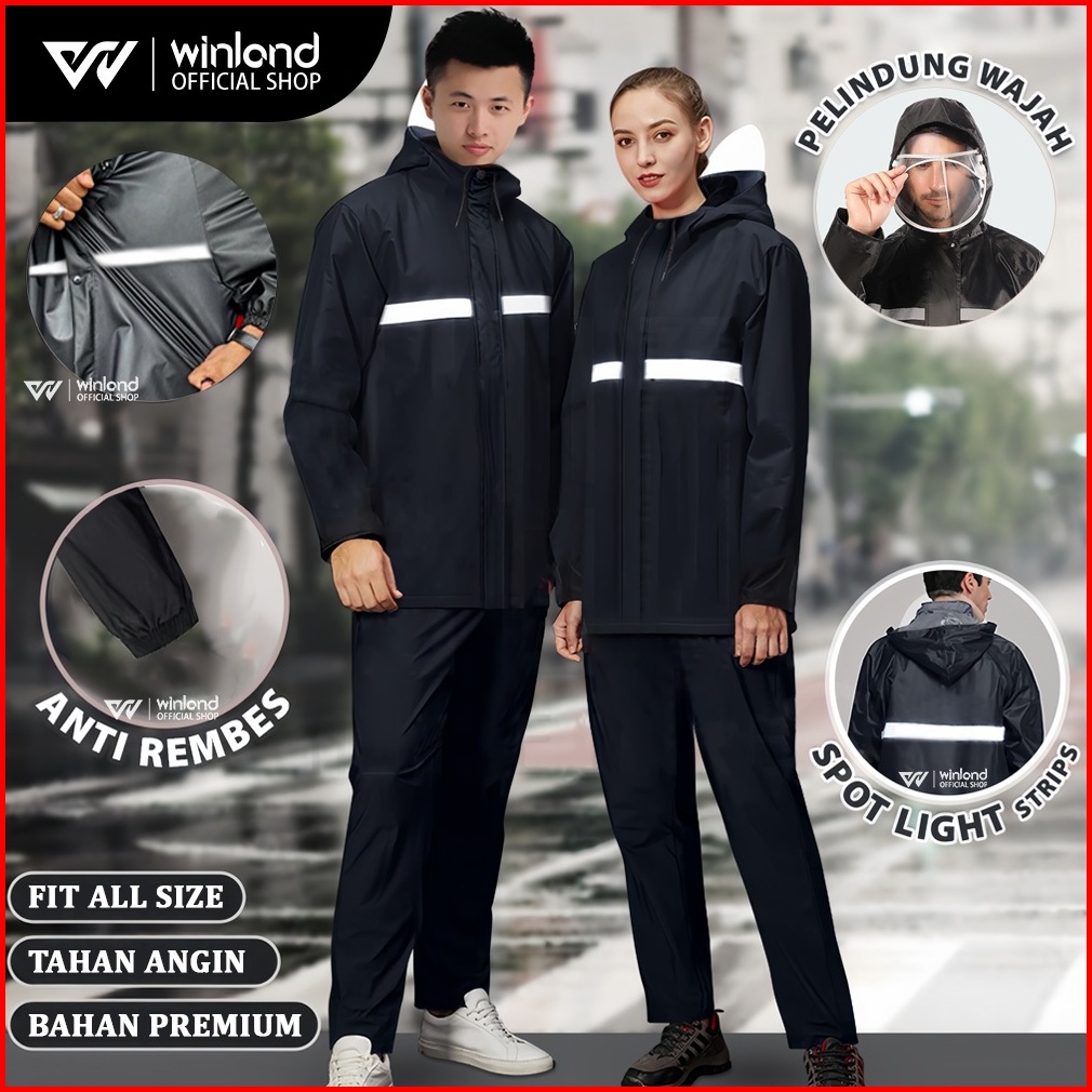 Winland Jas Hujan Raincoat Pria Dan Wanita Tebal Anti Angin Mantel Raincoat Baju5 Size 3 Warna