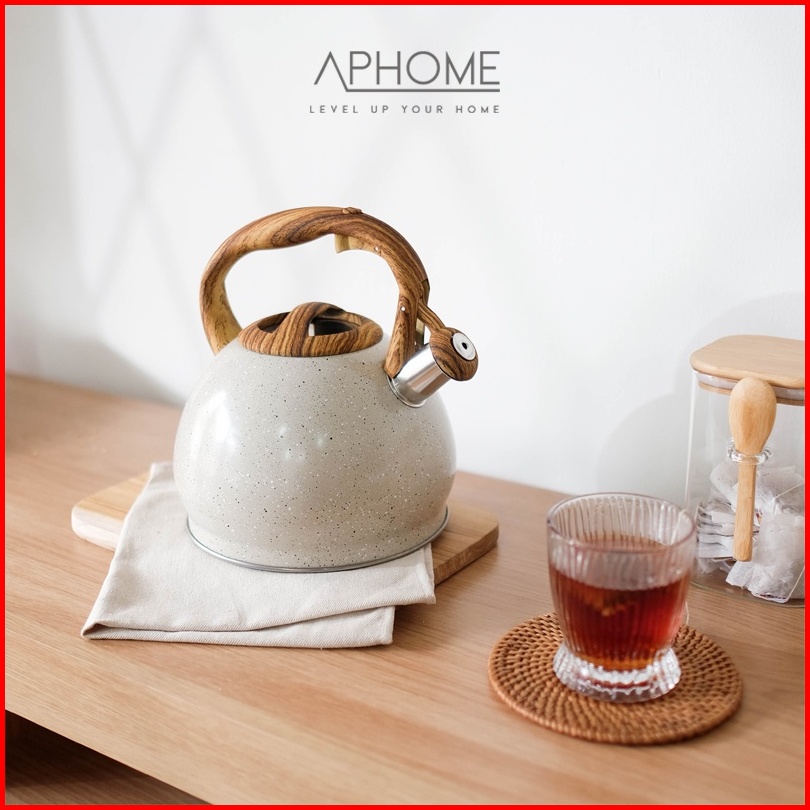 Aphome Teko Siul Air Panas 3l Korean Kettle Ceret Ketel Air Whistling Kettle Wooden Stainless Steel Aesthetic Dika