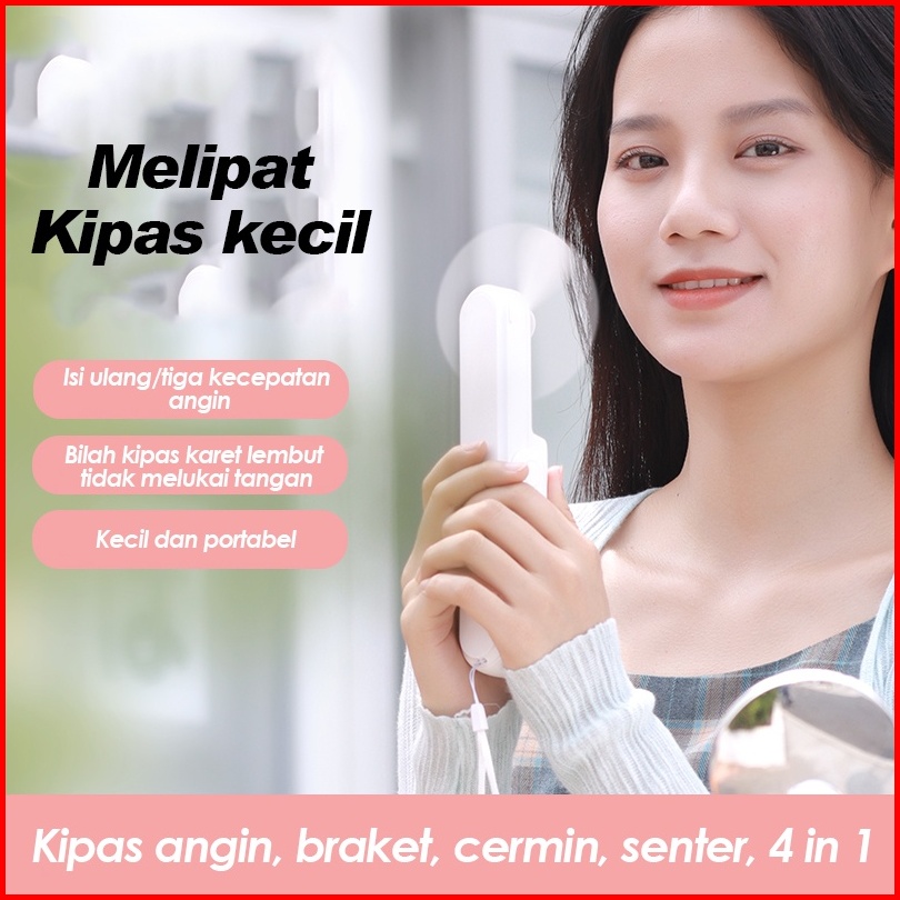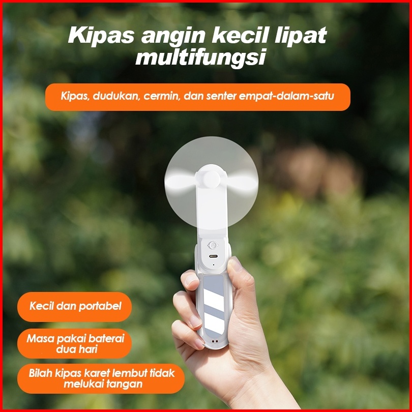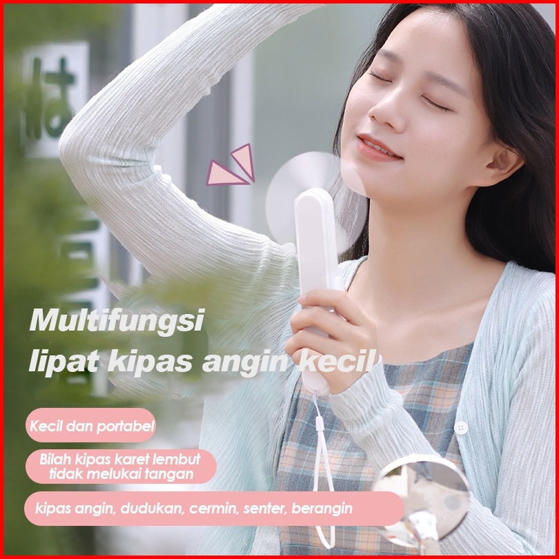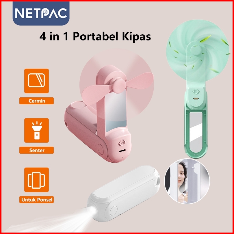 Netpac Kipas Mini Portable 3500mah Makaron Murah Mini Pocket Folding Fan With Senter Bracket Mirror