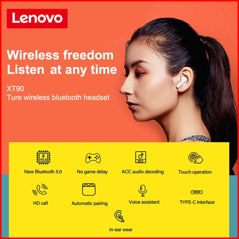 Thinkplus Lenovo Xt90 True Wireless Stereo Tws Headset Bluetooth 5.0 Kontrol Sentuh Ipx5 Waterproof