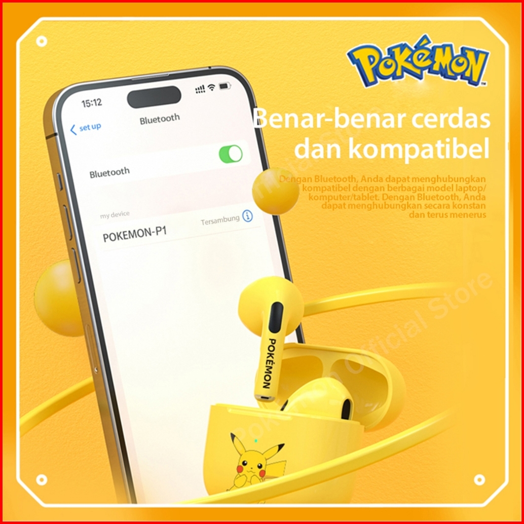 Pok Mon F11 Headset Nirkabel Bluetooth 5.3 Pikachu Tws Earbud Hifi Musik Earphone Reduksi Noise Hd Dengan Mic Untuk Andr