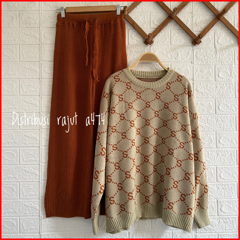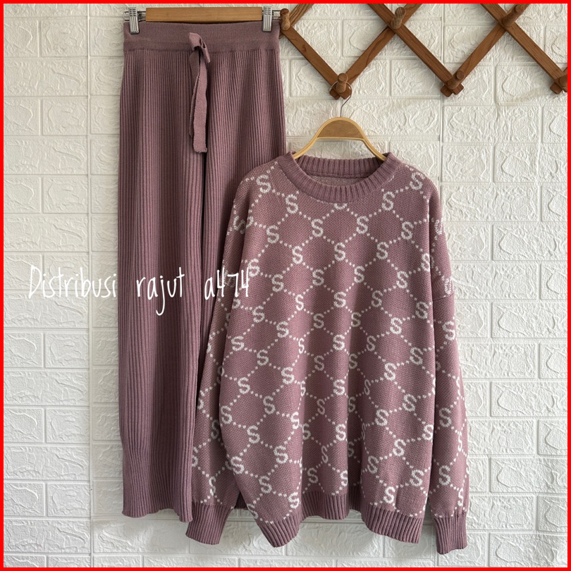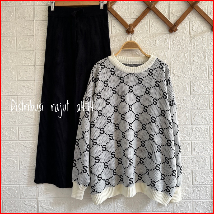 Oneset Sweater Bangkok Setelan Celana Kulot Rajut Wanita