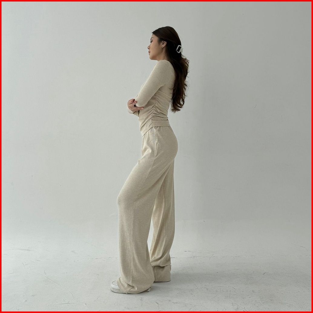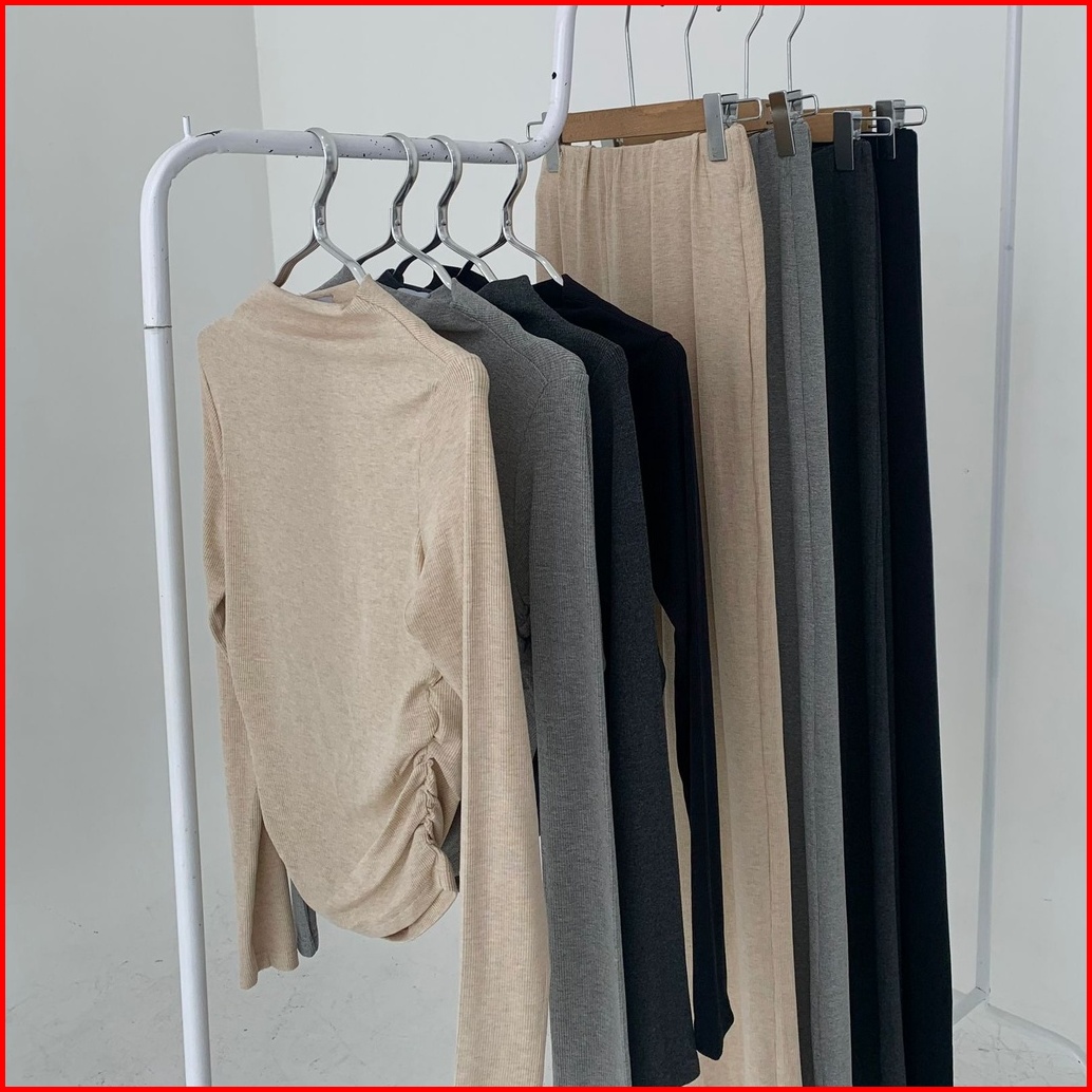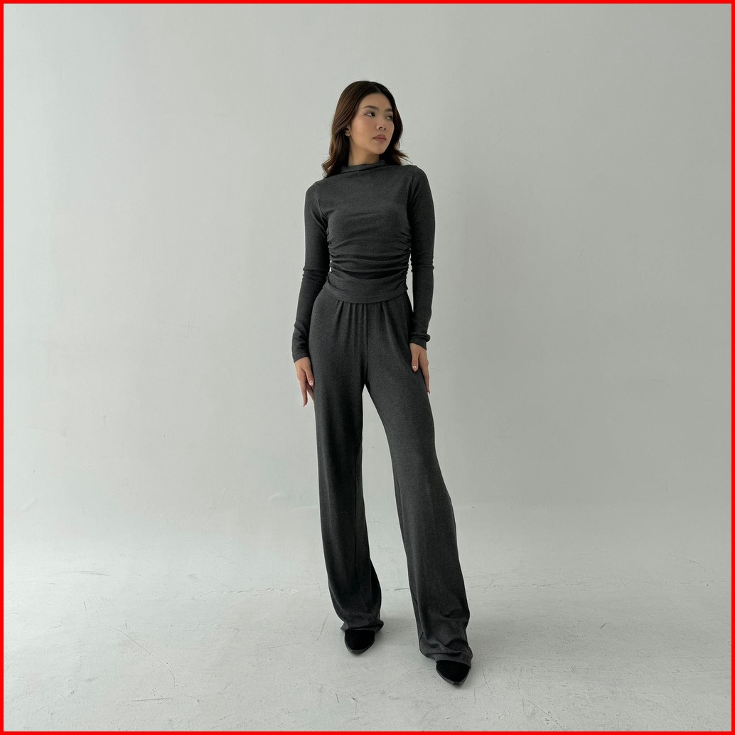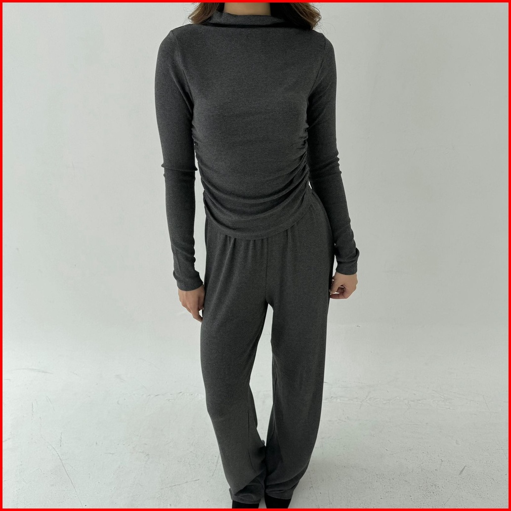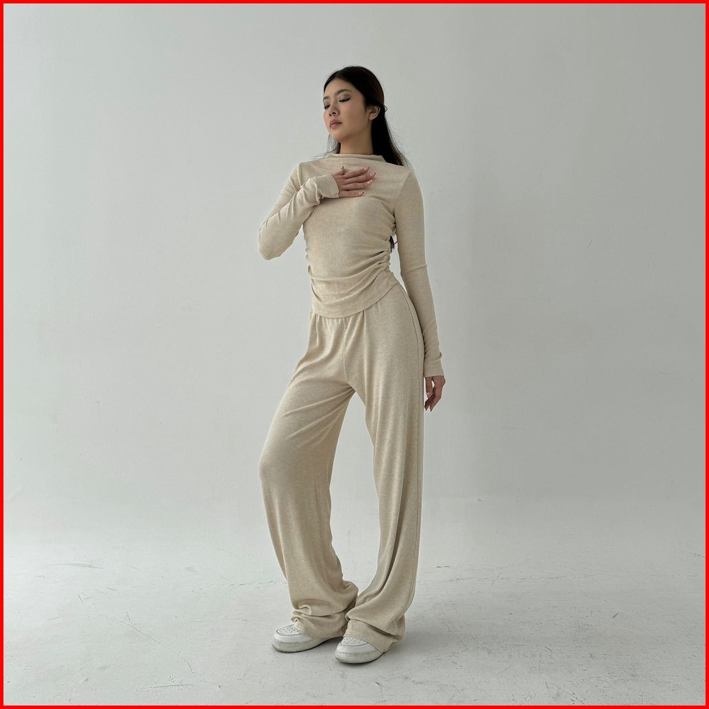 Capricorn Set Setelan Wanita Ribbed Knit Set Lengan Panjang Celana Panjang Straight Highwaist Highwaisted Pants