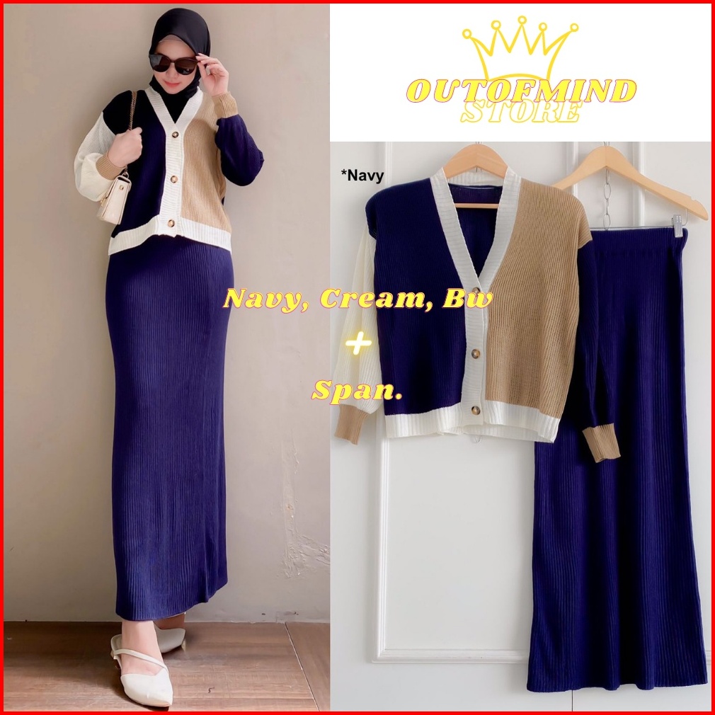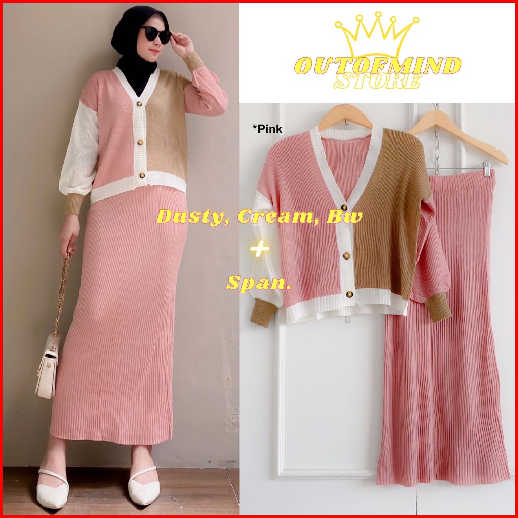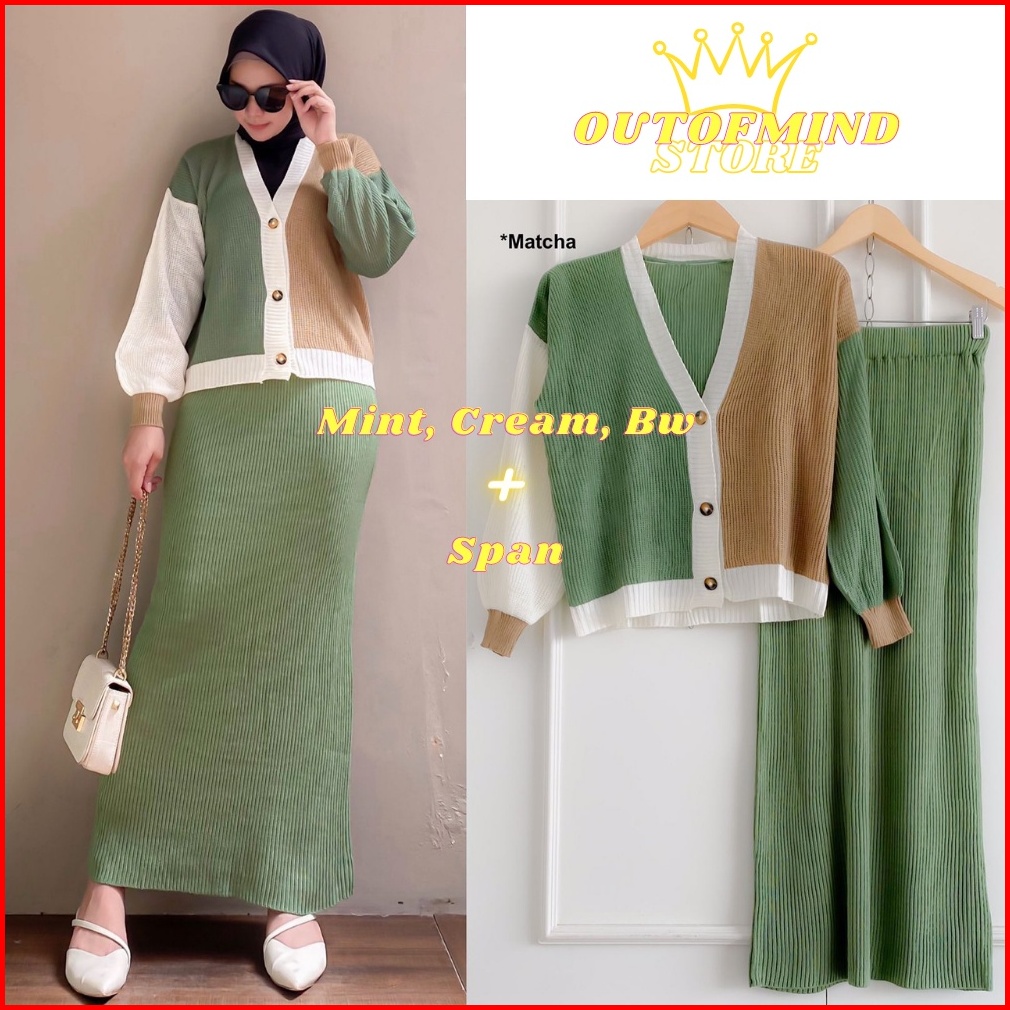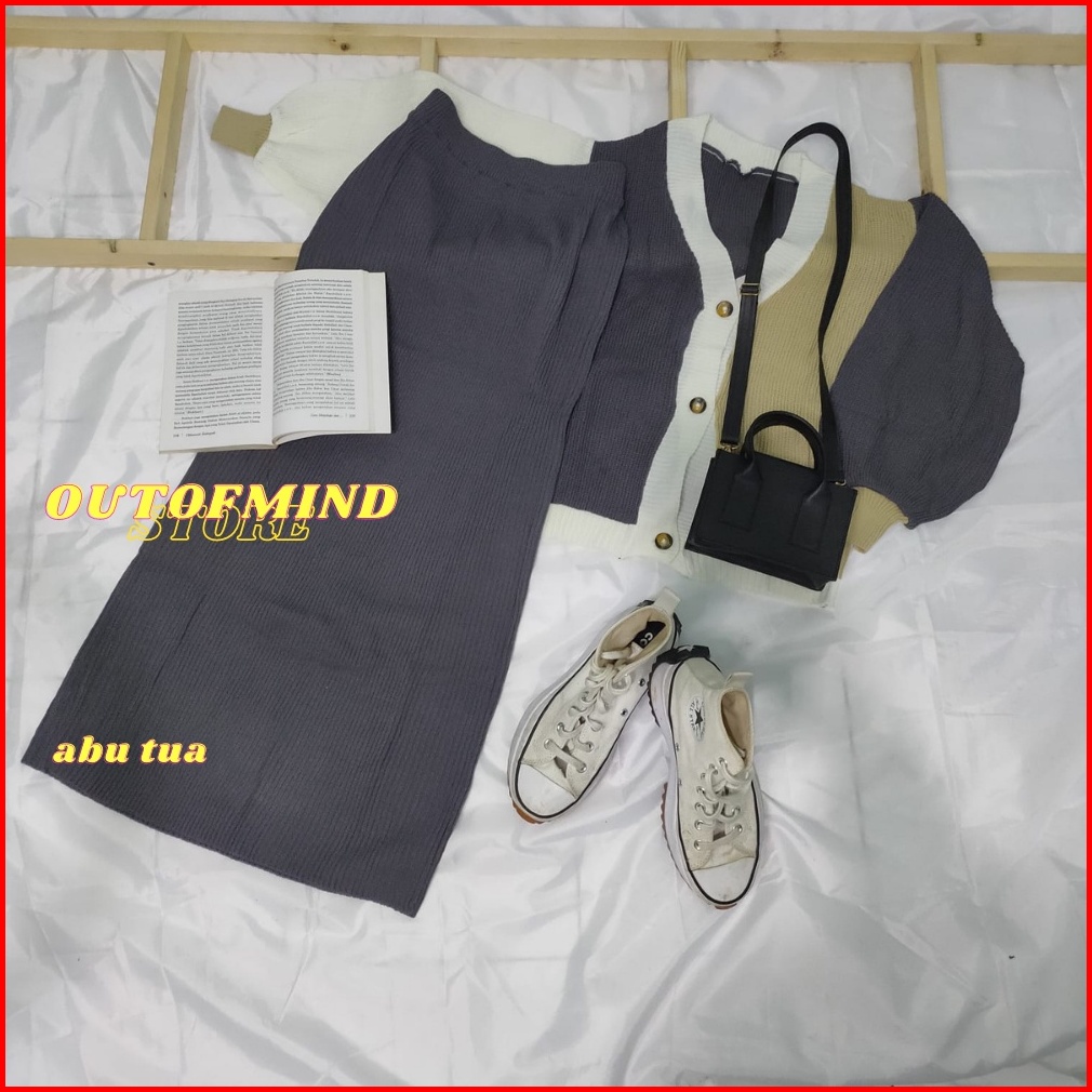 Candy Cardy 3 Tone - Oneset - Setelan Rajut - Setelan Wanita Hijab - Baju 1 Set Wanita Korean Style - Cardigan Rajut - O