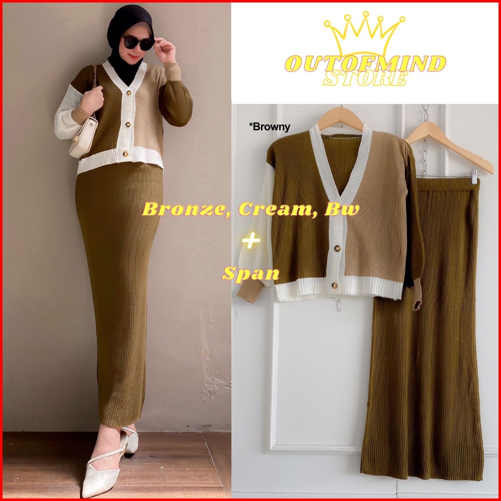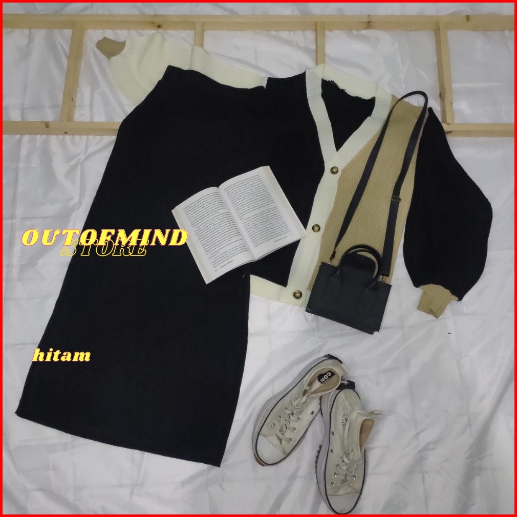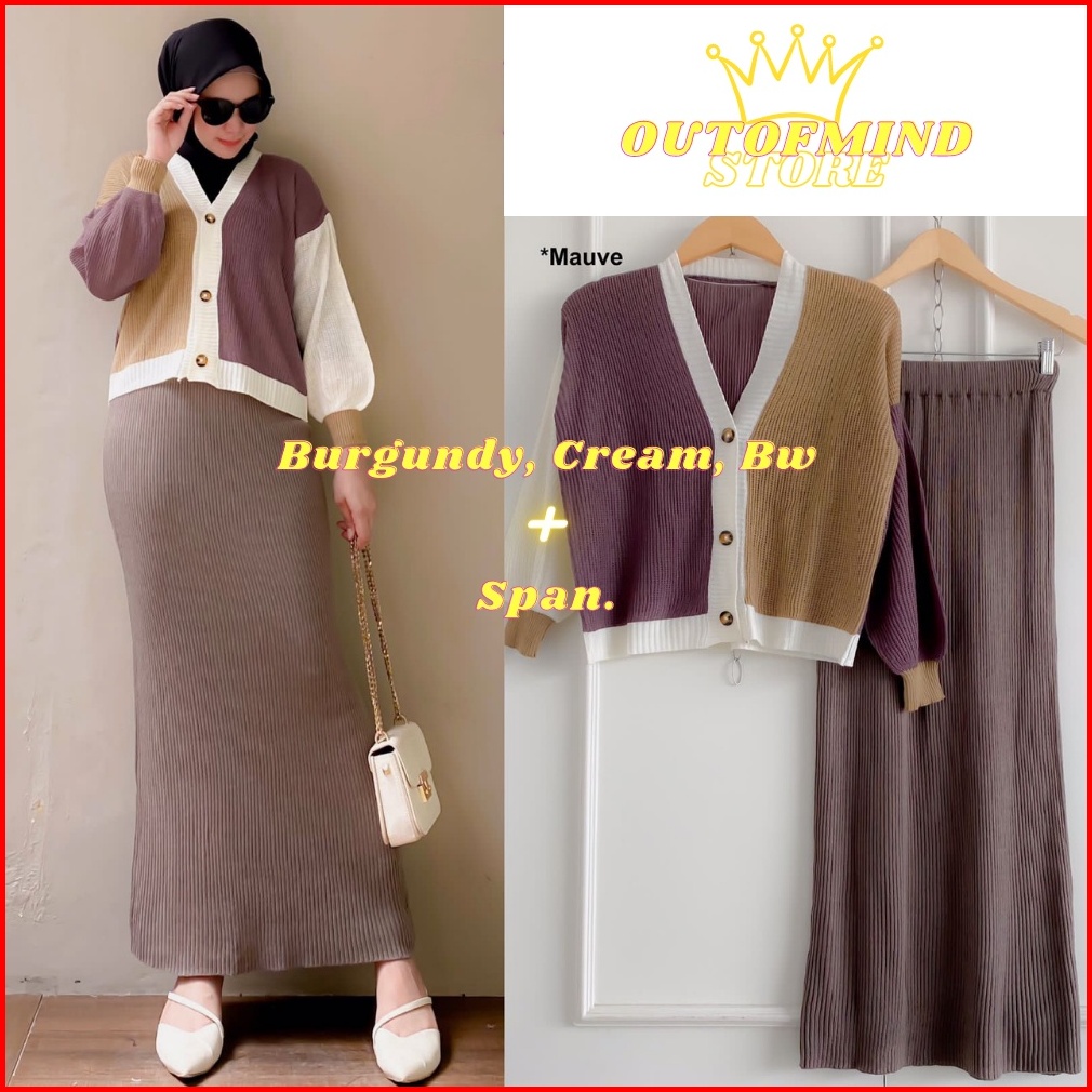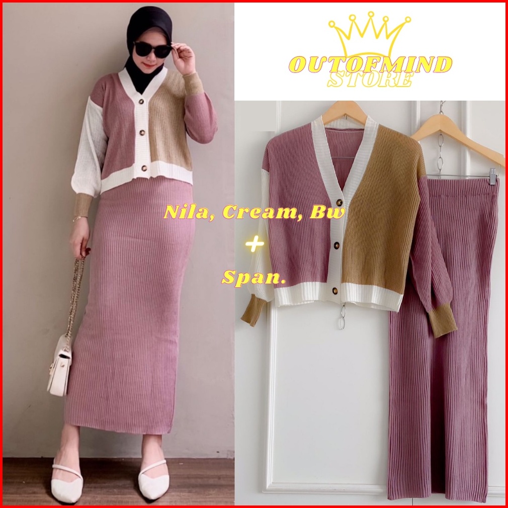 Candy Cardy 3 Tone - Oneset - Setelan Rajut - Setelan Wanita Hijab - Baju 1 Set Wanita Korean Style - Cardigan Rajut - O