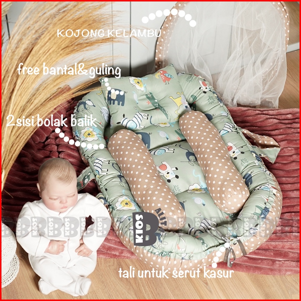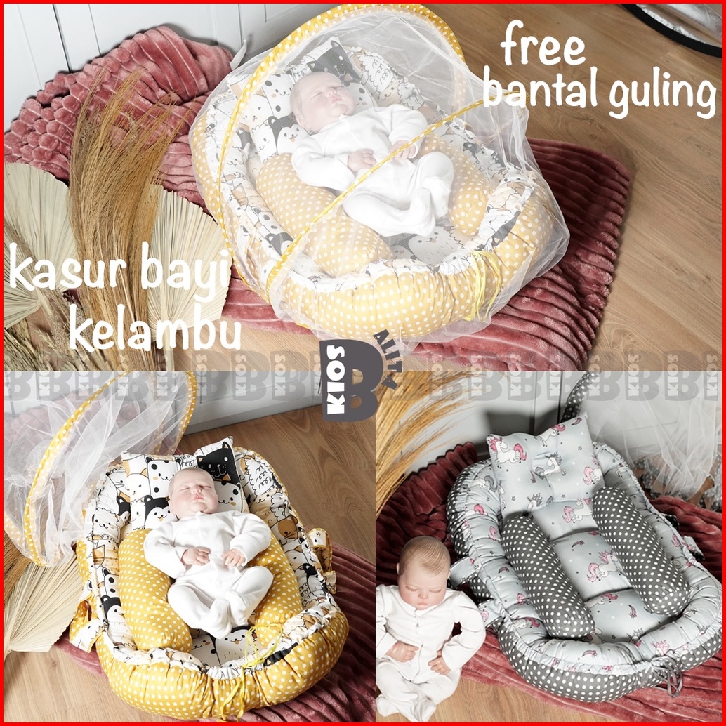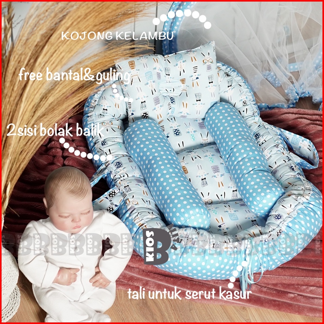 Kasur Bayi Baby Nest Premium Dengan Kelambu Free Bantal Peyang Dan Guling Bayi Bisa 2 Sisi Motif Bolak Balik
