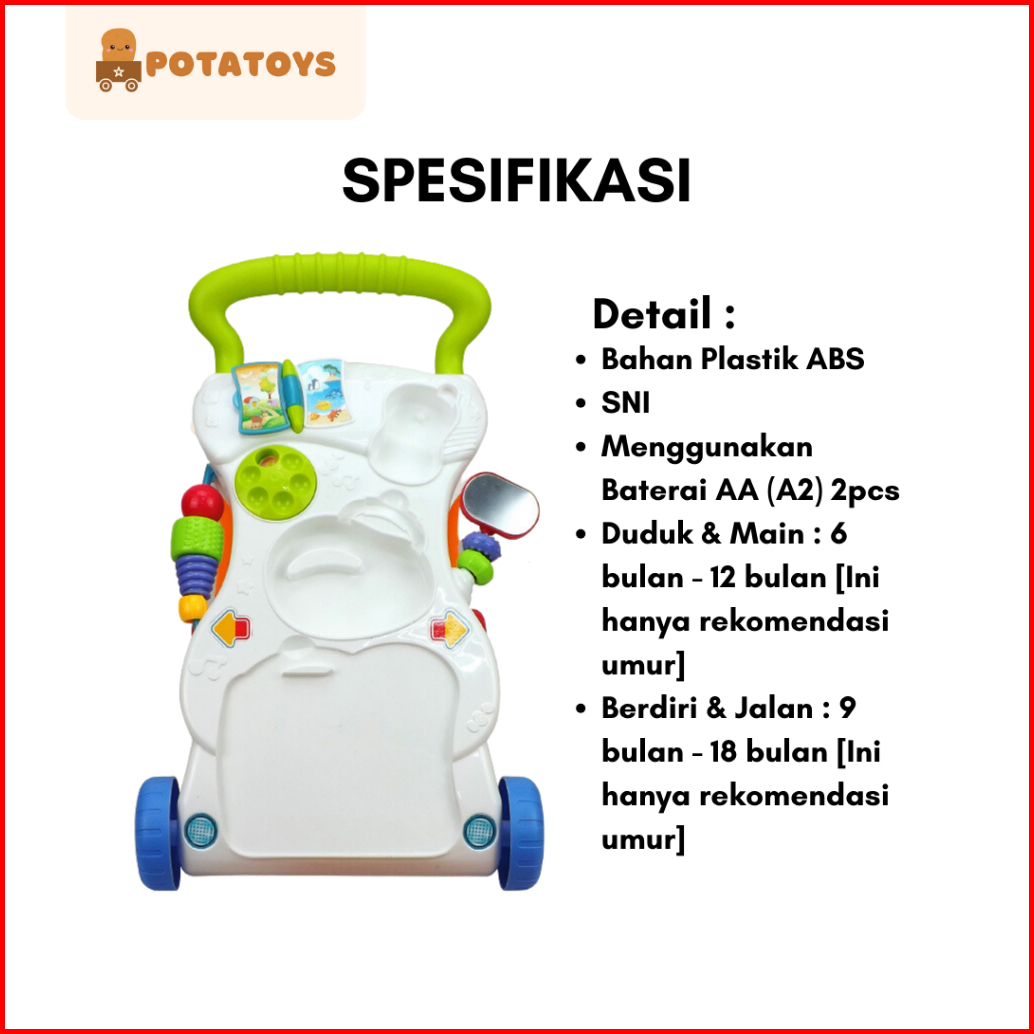 Potatoys Baby Push Walker Mainan Baby Walker Music Dorongan Bayi Musik Push Walker
