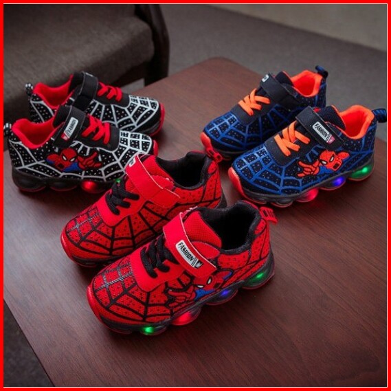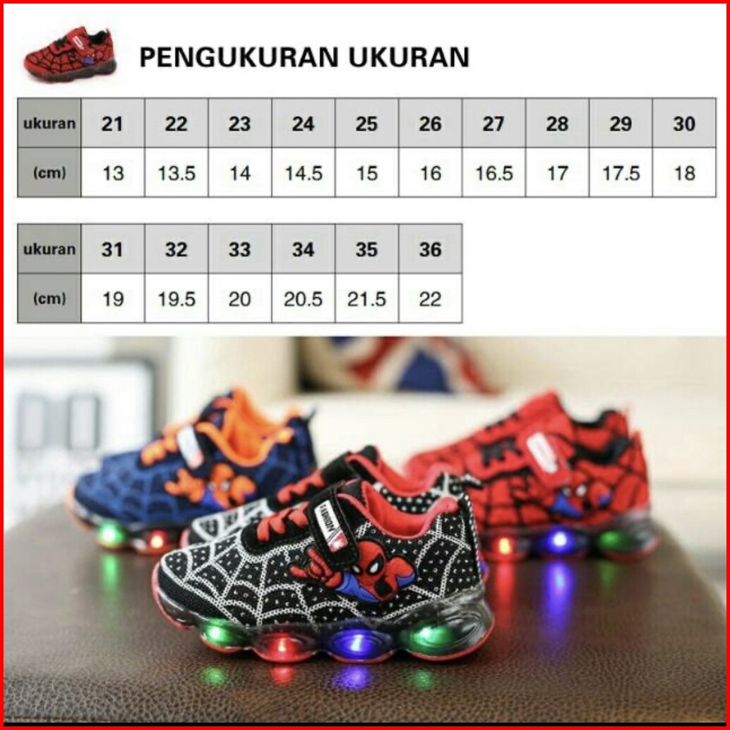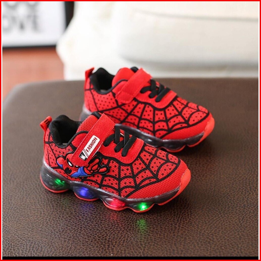 Sepatu Led Spiderman Impor Ukuran 21-36