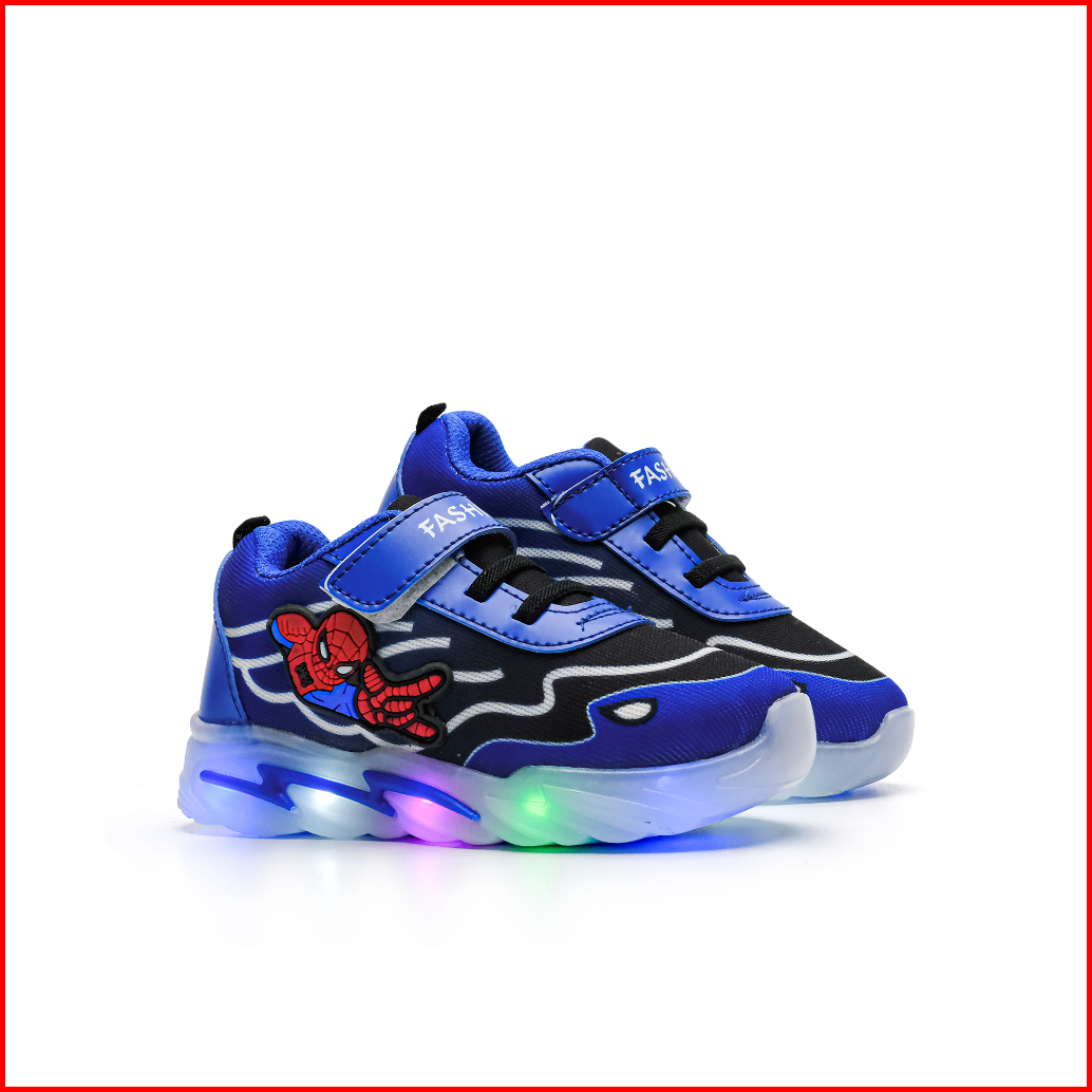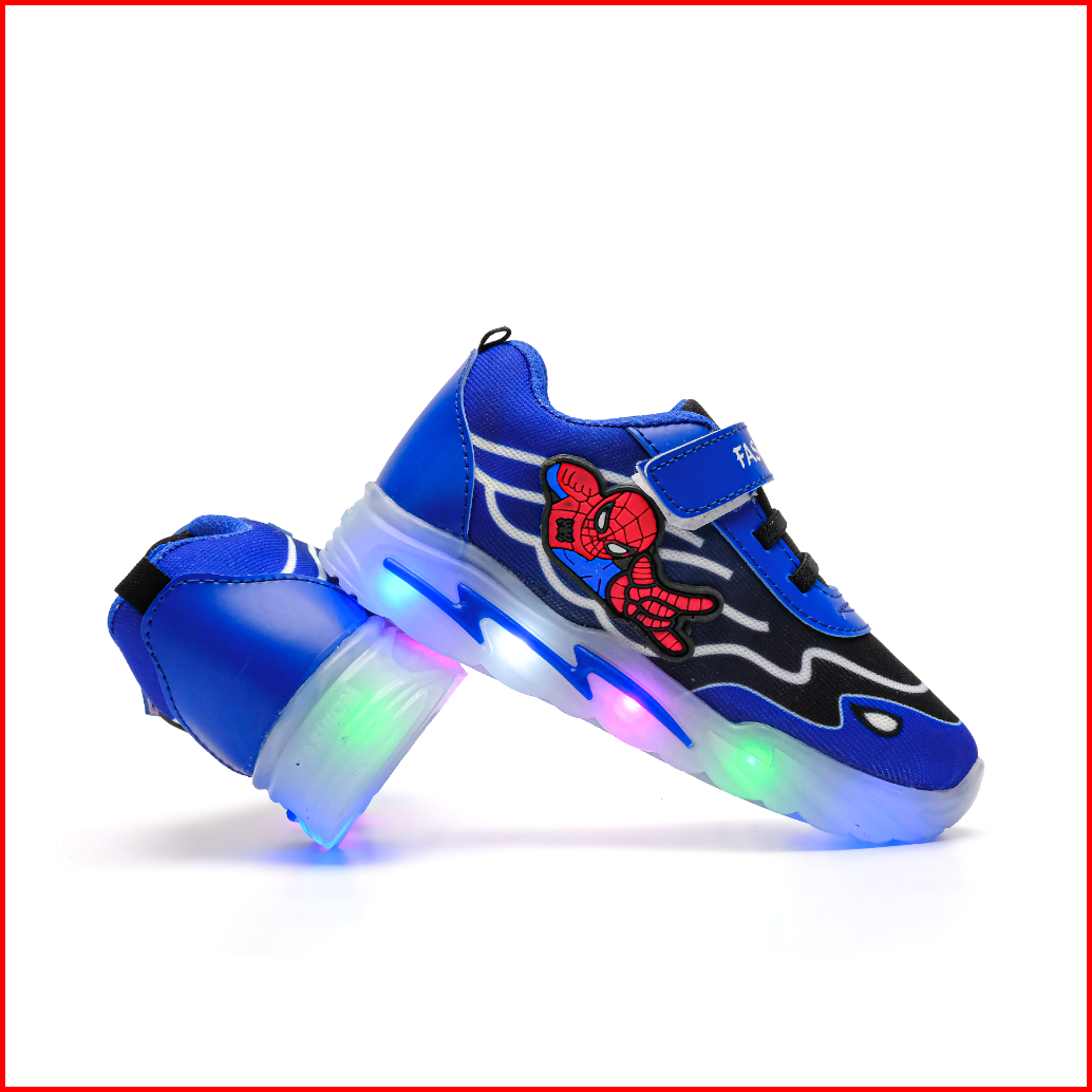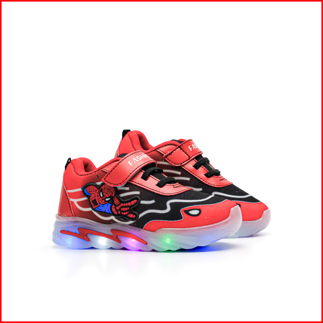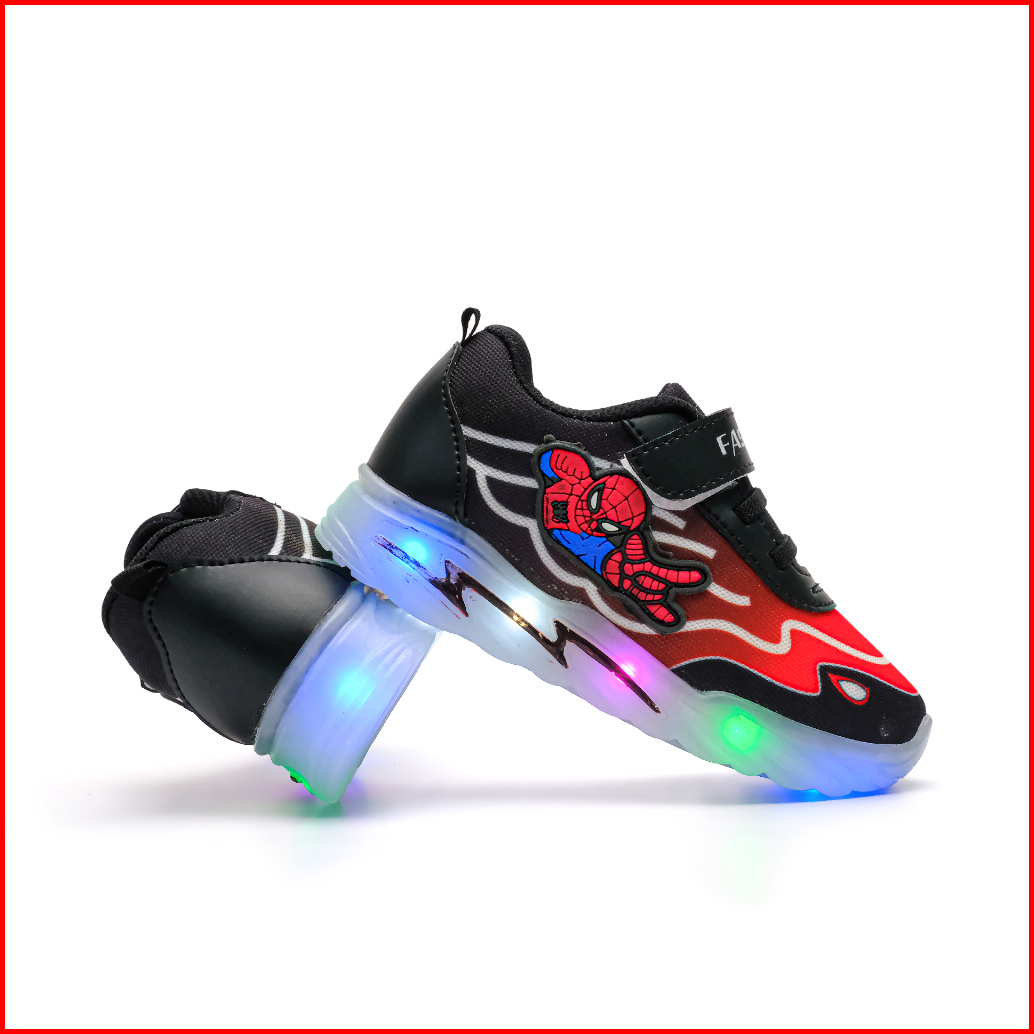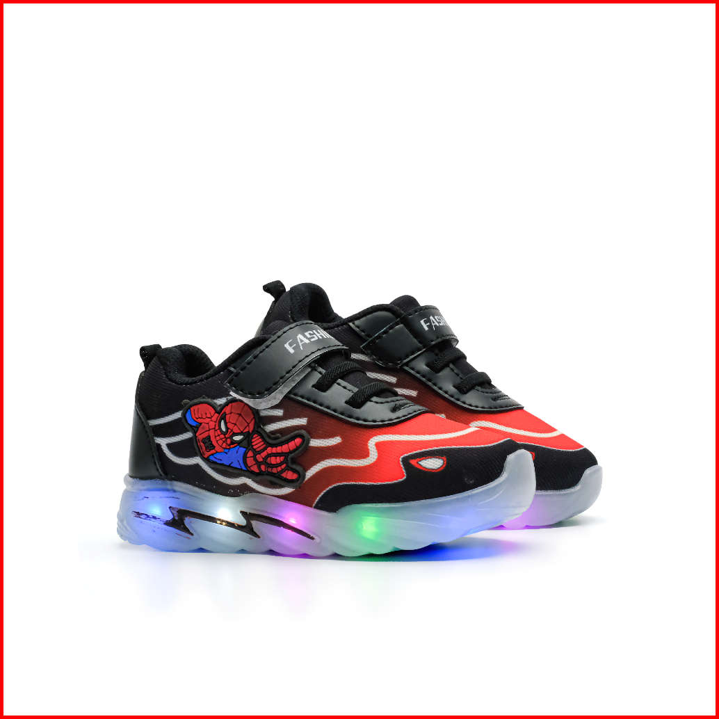New Sepatu Anak Laki-laki Model Lampu Led Sepatu Sneakers Anak Karakter Spider 1-6 Tahun