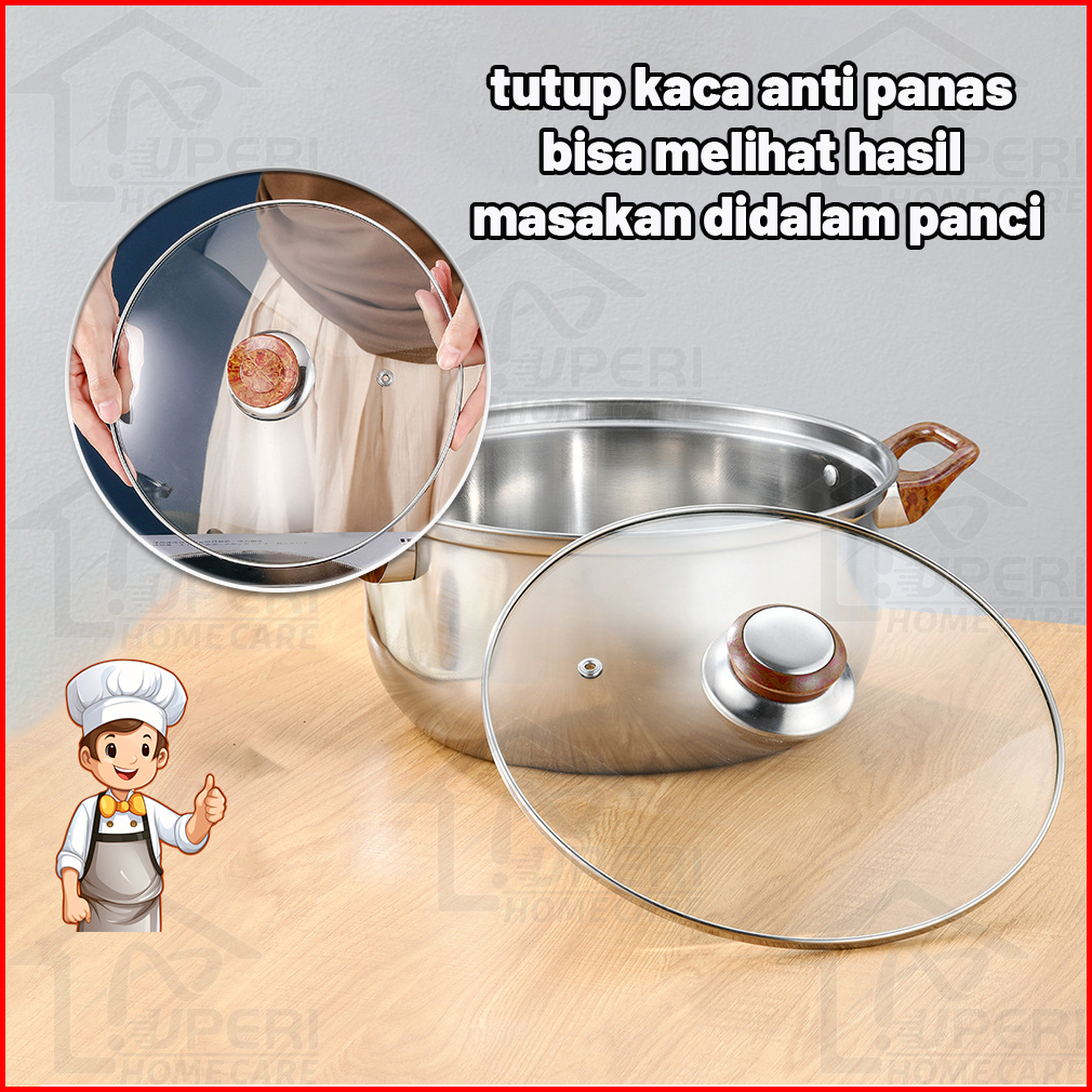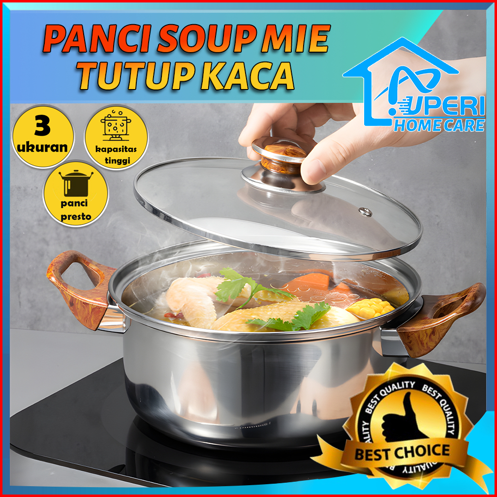 Uperipanci Sup Sop Soup Pot Stainless Steel Tutup Kaca Murah Panci Sop Stainless Steel Soup Pot