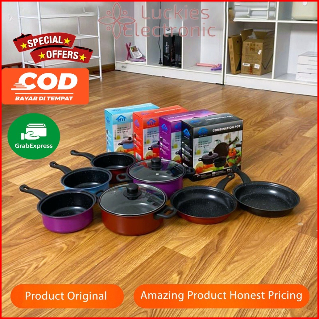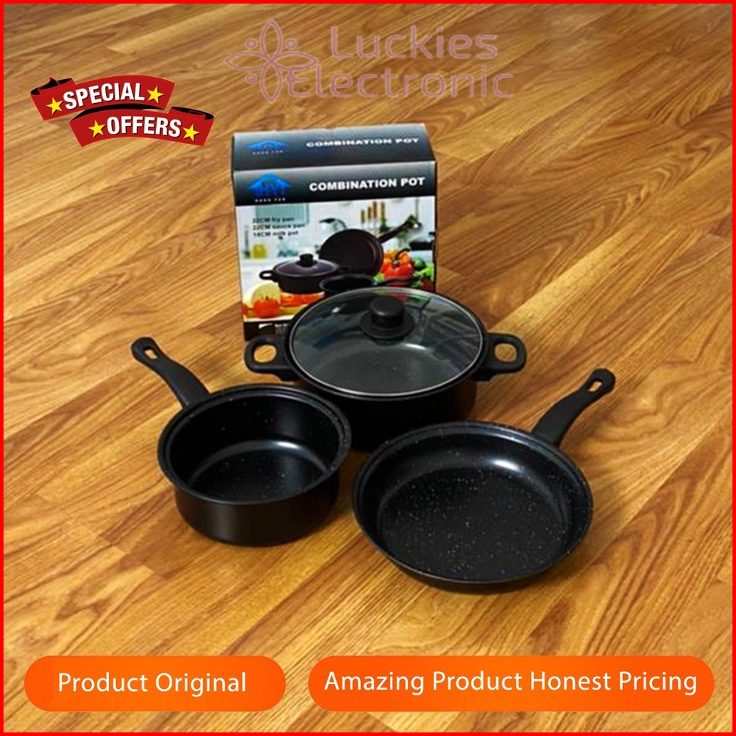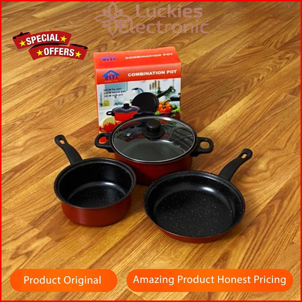 Panci Set 3 In 1 Wajan Teflon Stainless Steel Cookware Set Free Penutup Kaca Panci Kukus Fry Pan