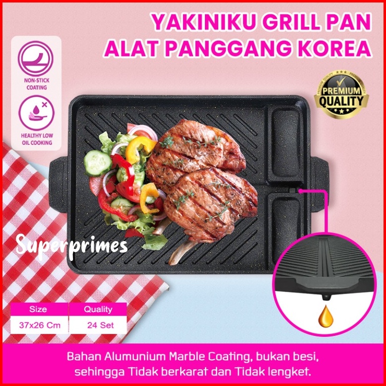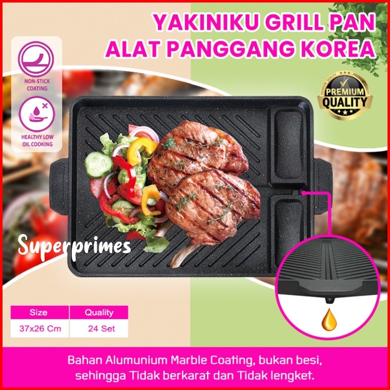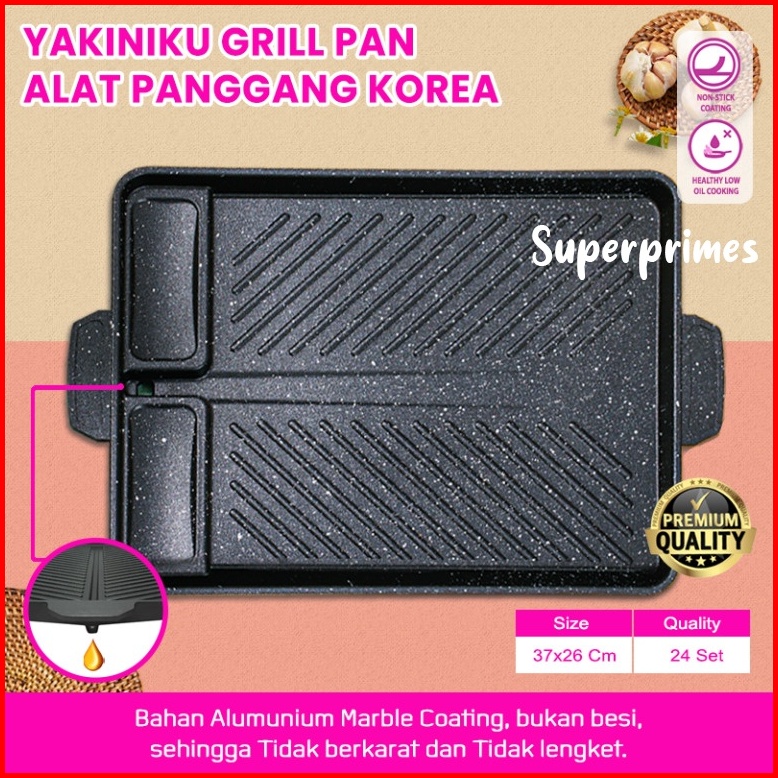 Alat Panggang Barbeque Yakiniku Grill Pan Gm-2157 Panggangan Portable Anti Lengket Dan Anti Karat Alumunium Coated Marbl