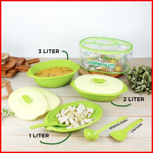 Millenium Serving Set - Kotak Makanan Wadah Tempat Sayur Set Mangkok Mangkuk Piring Centong