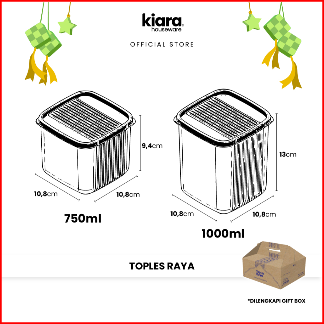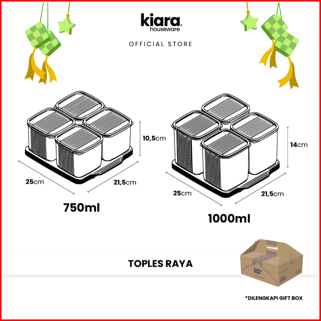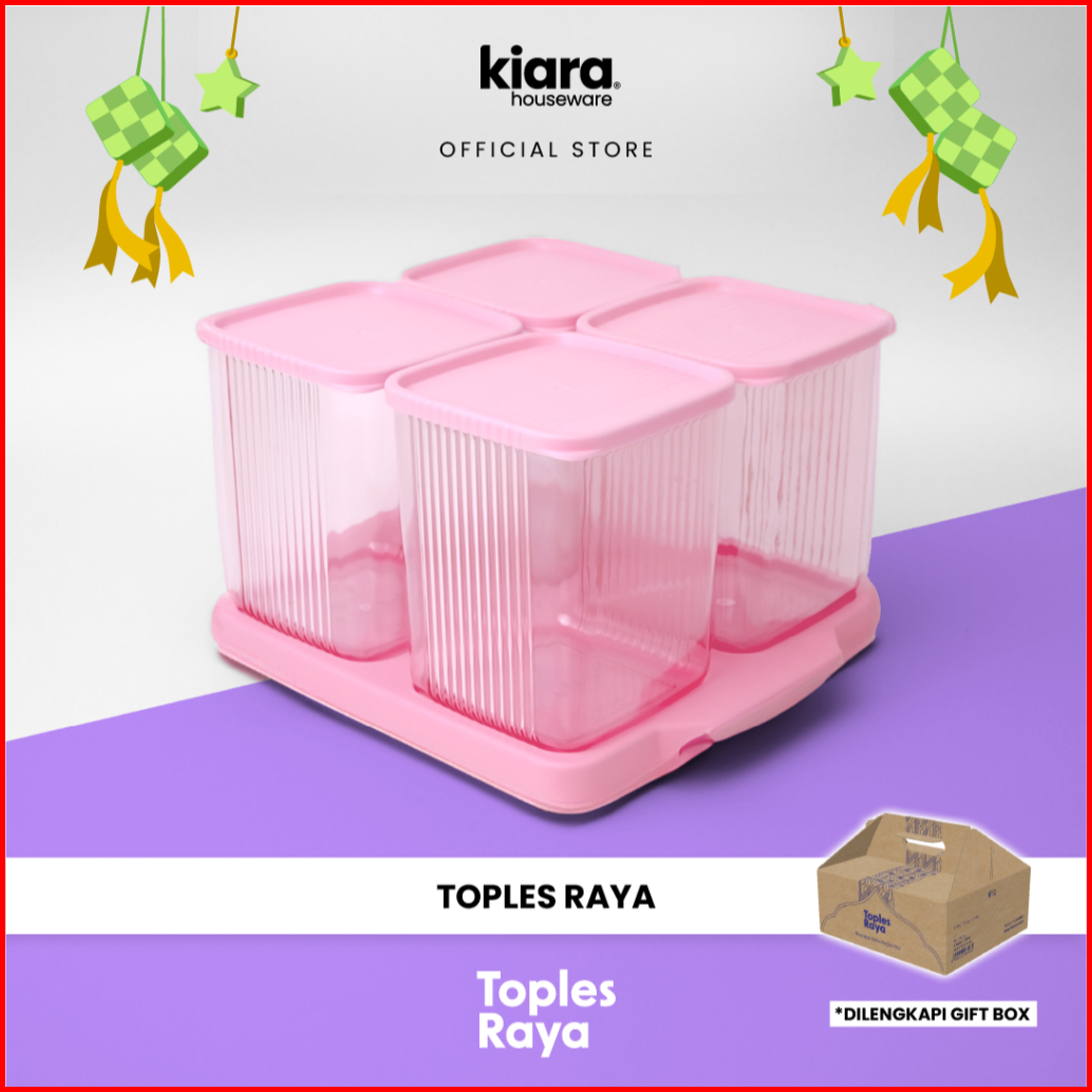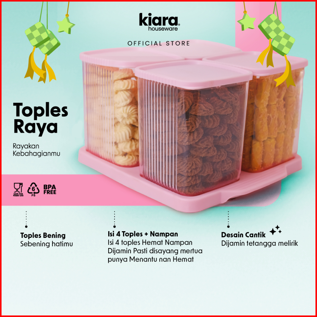 Kiara Houseware Toples Raya Tempat Penyimpanan Kue Kering Toples Set Nampan