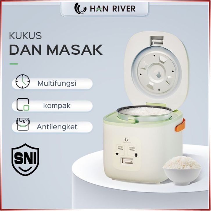Magic Com HAN RIVER HRRC04 Rice Cooker Mini 0.8L Whtie Penanak nasi Low Watt 400watt Serbaguna Anti Lengket Portable