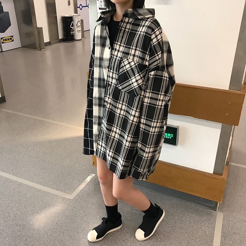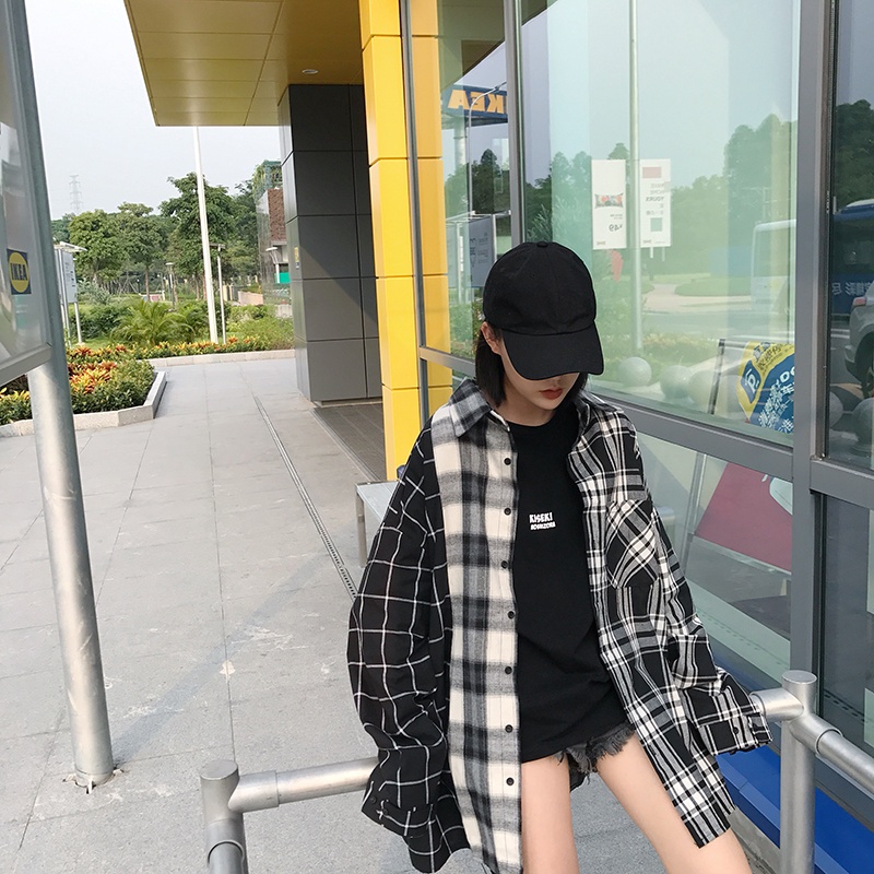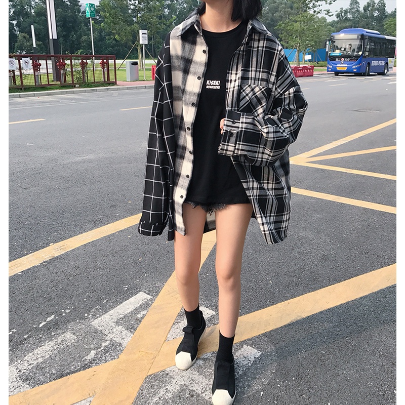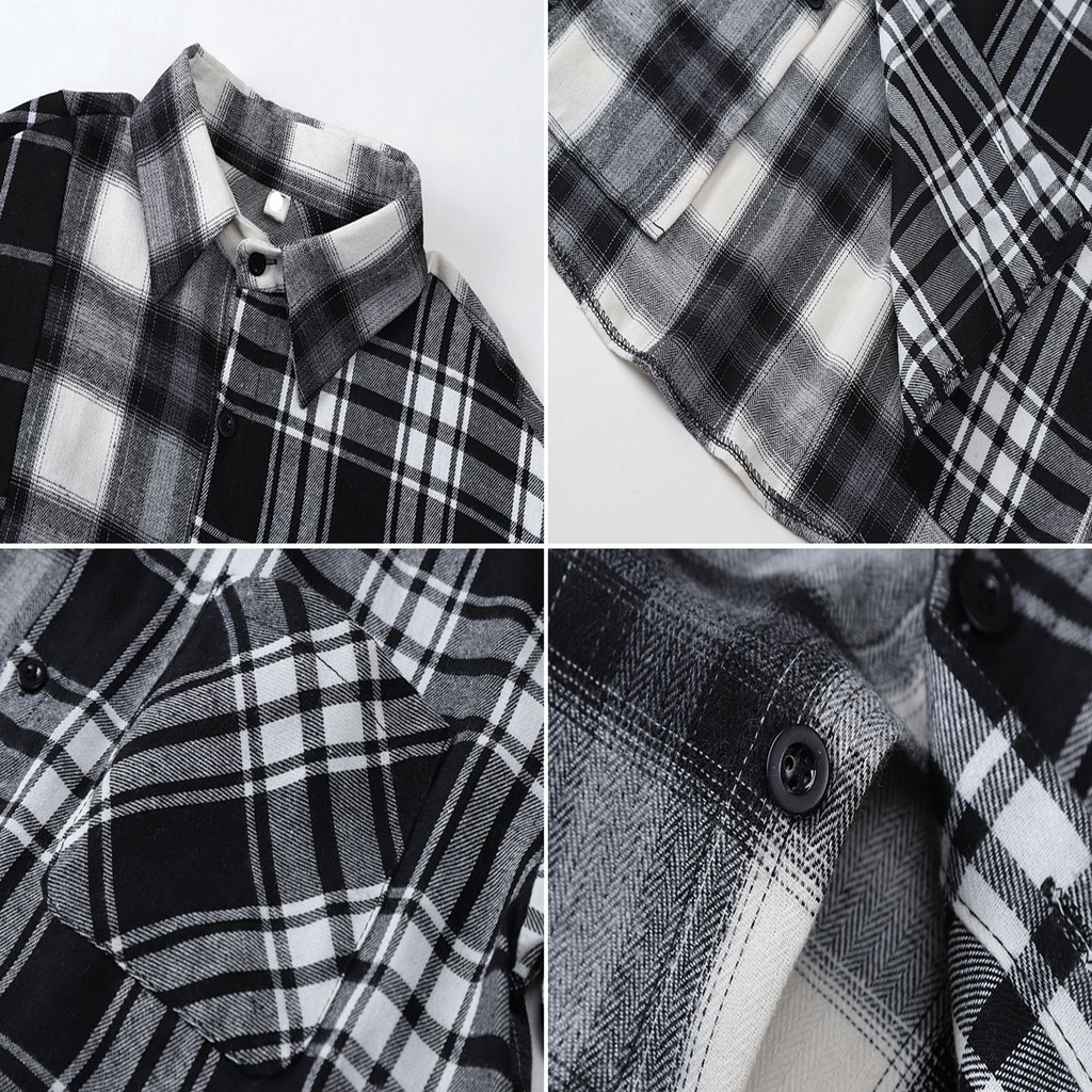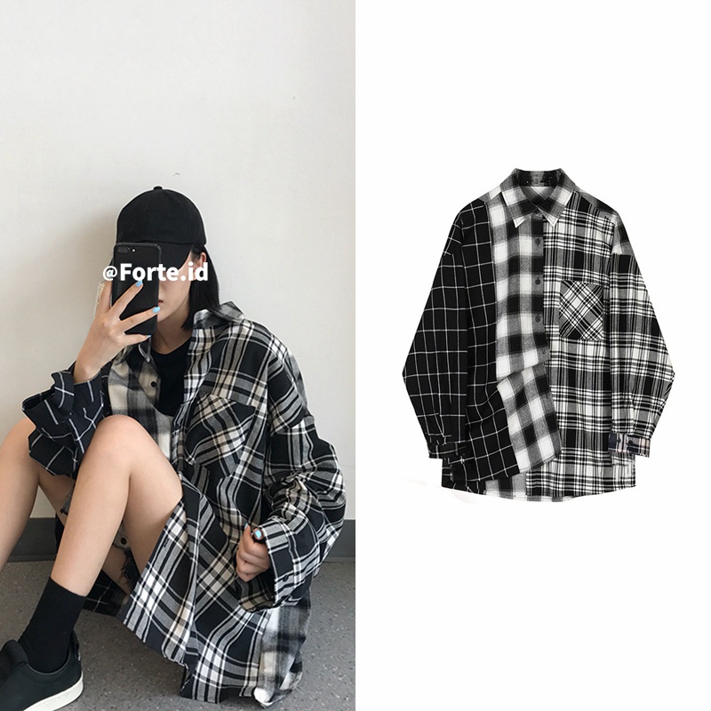 DEVKA FASHION Kemeja Lengan Panjang Wanita Kemeja Kotak-kotak Oversize Korean Style