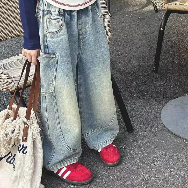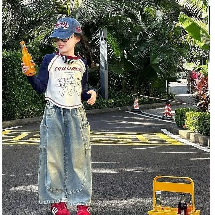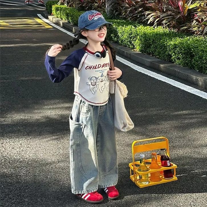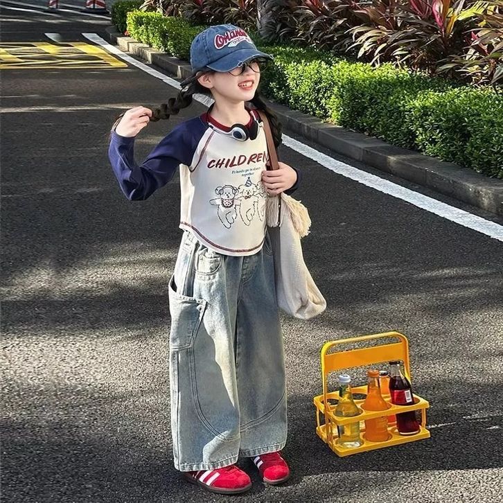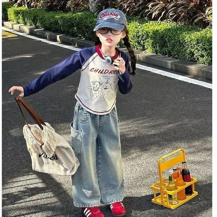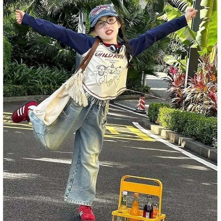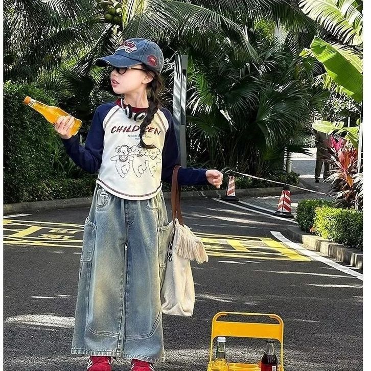 Setelan Anak Perempuan Korea Style Terbaru Baju Anak Atasan Lengan Panjang Celana Jeans Kulot Outfit Anak Cewek Kekinian