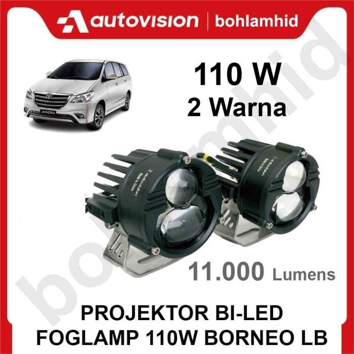 Lampu Kabut Foglamp INNOVA 2011-2014 Projektor Bi LED 3" Autovision Borneo LB 110W 2Warna Lampu Kabut - Putih Kuning