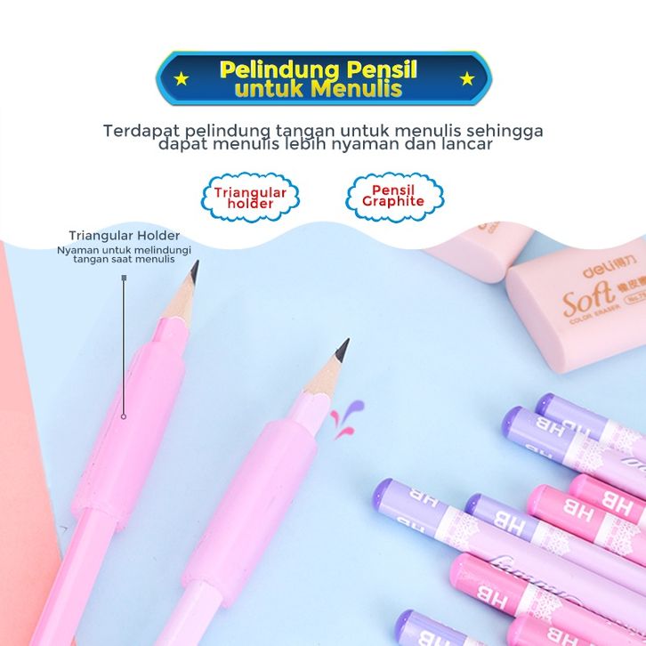 Alat Tulis Anak Set 4 In 1 Rautan Pensil 12pcs Pensil 2 Penghapus Dan 2 Penutup Pena 68896 Alat Tulis Sekolah Lengkap