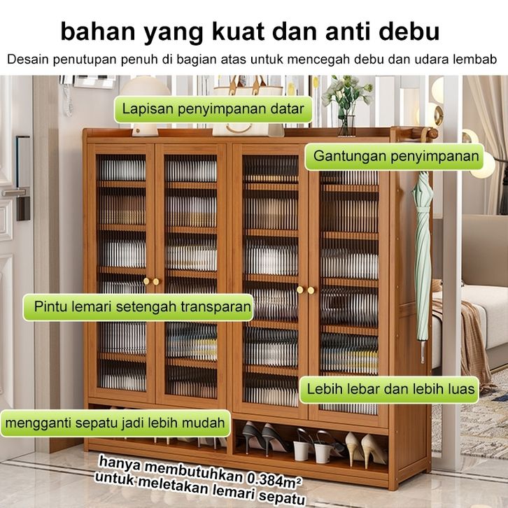 RAK SEPATU TERTUTUP ANTI DEBU BEST SELLER MODEL SEKARANG LEMARI SEPATU SUSUN KAYU ESTETIK MINIMALIS 48 PCS SEPATU