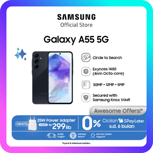 [Mall] SAMSUNG GALAXY A55 5G 8/256GB OFFICIAL STORE HP TERBARU 2025 TANPA DP