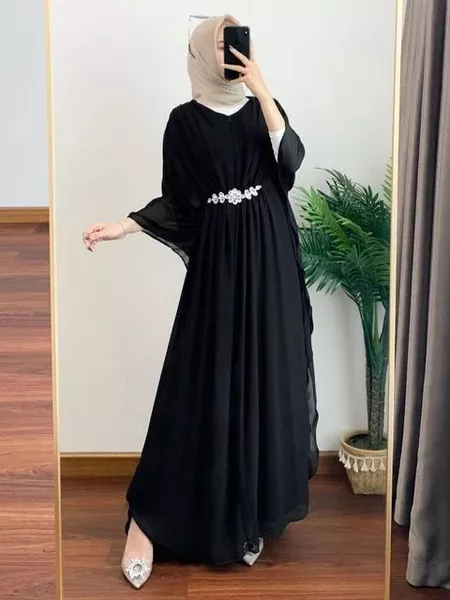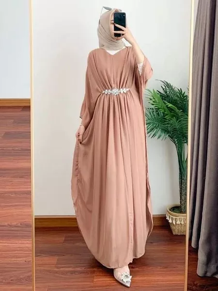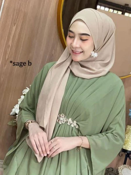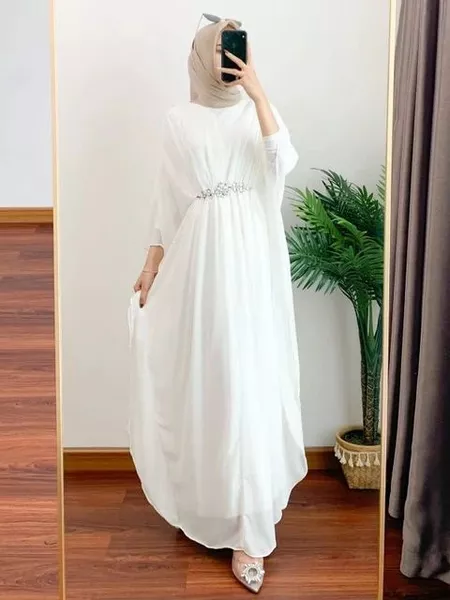 KAFTAN PUTIH GAMIS LEBARAN TERBARU 2024 GAMIS MUSLIM SHABIRA KAFTAN MATT CERUTY BABYDOLL FULL FURING MODEL BATWING(KALON