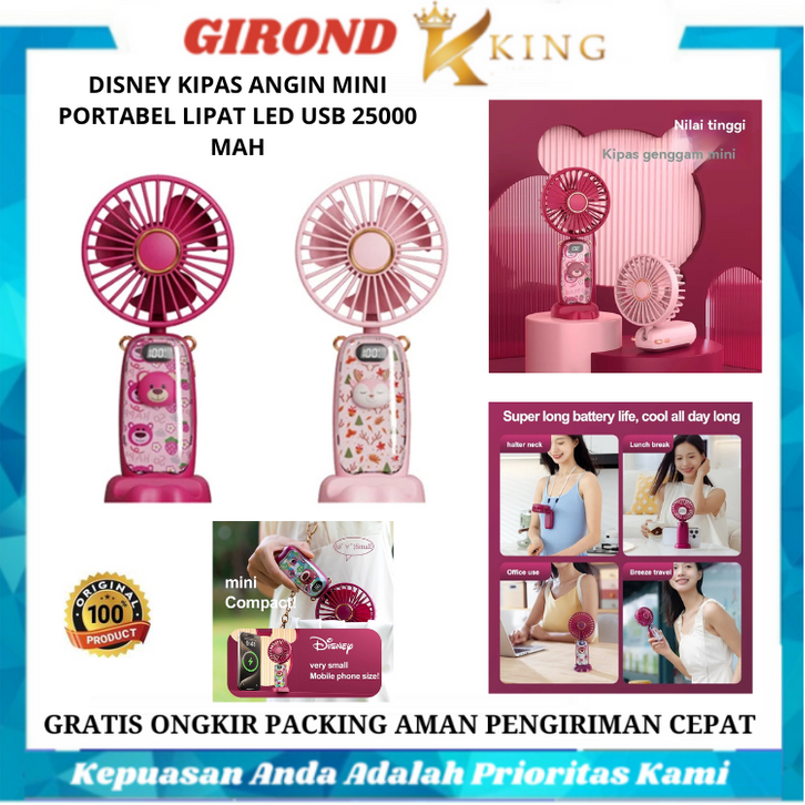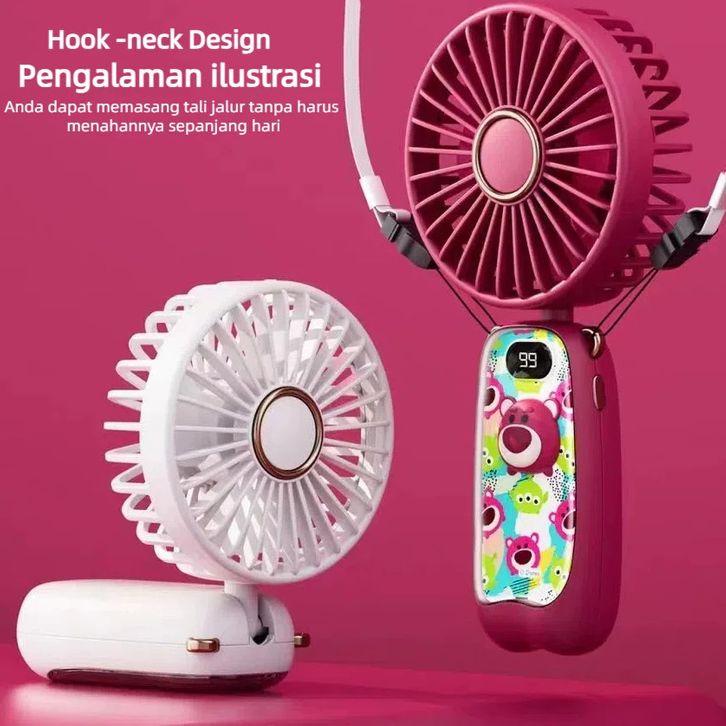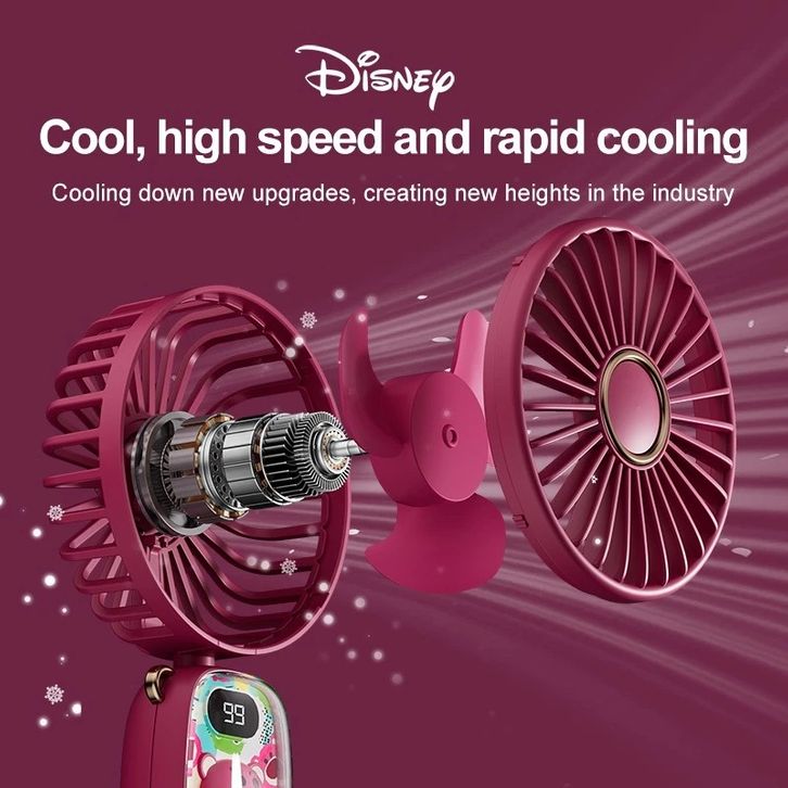 Disney Kipas Angin Mini Portabel Usb 25000 mAh Kipas Lipat / Leher 5-Speed Wind LED Display / Kipas Angin Mini