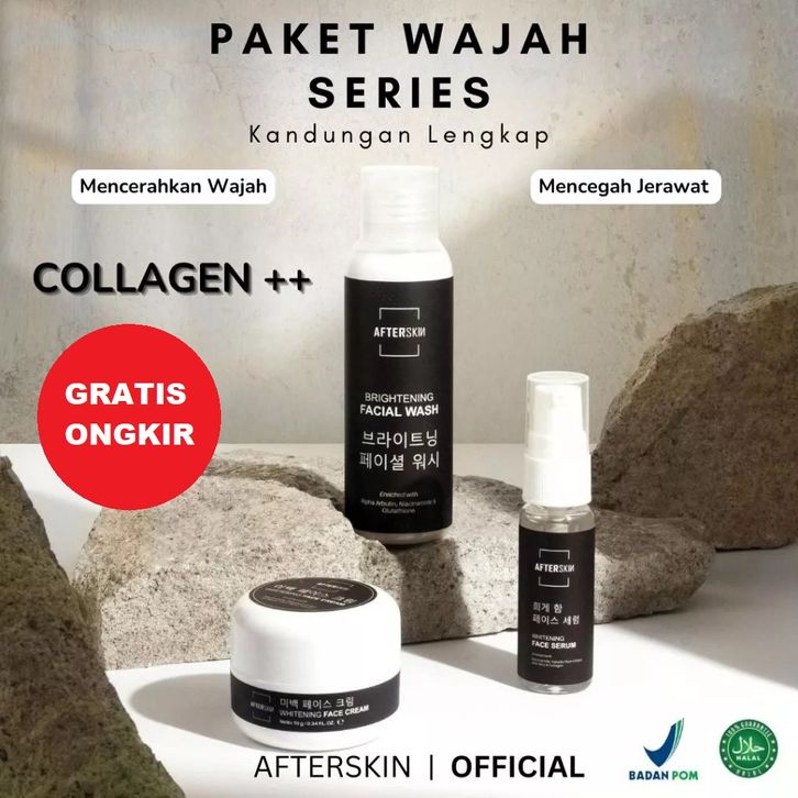 [PAKET WAJAH PRIA] AFTERSKIN WHITENING SERUM + FACE CREAM + FACIAL WASH ALA KOREA /SKINCARE PEMUTIH