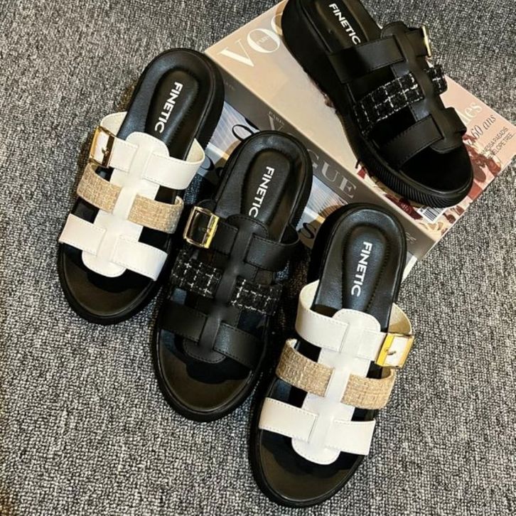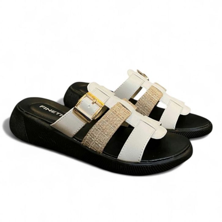 Sandal Slop Kekinian Wanita Platform Wedges Rajut Hak Tinggi 3 Cm Camelia Rajut Series
