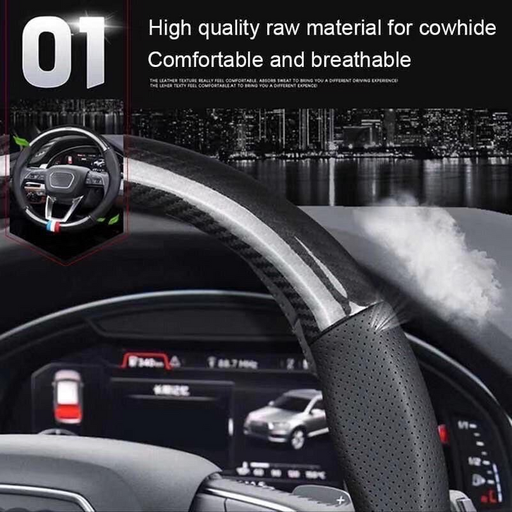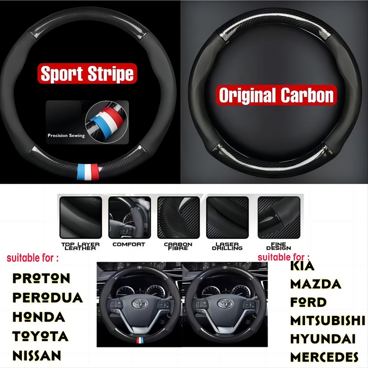Sarung Stir Mobil Sigra Sarung Stir Mobil Logo Brand Cover Steer Carbon Karbon Sport Kulit Domba Asli Original