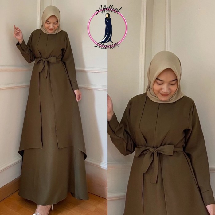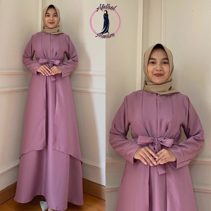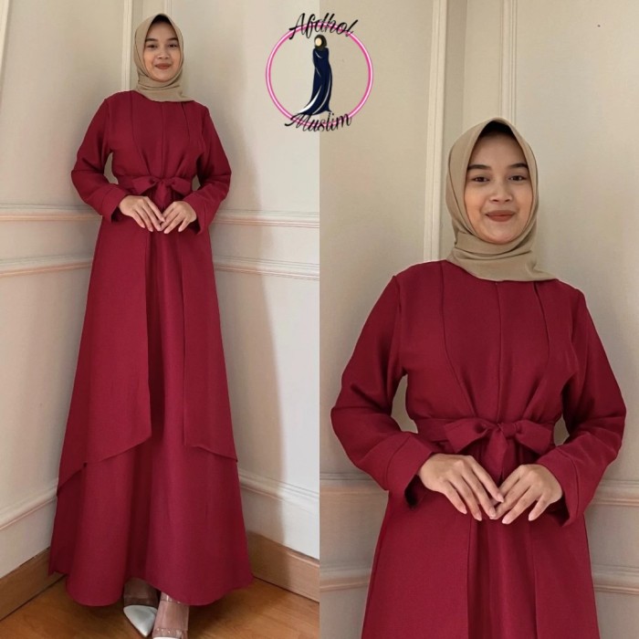 BAJU GAMIS MUSLIM WANITA ALUNA MAXI DRESS MUSLIM BIG SIZE TERMURAH - MAROON, M