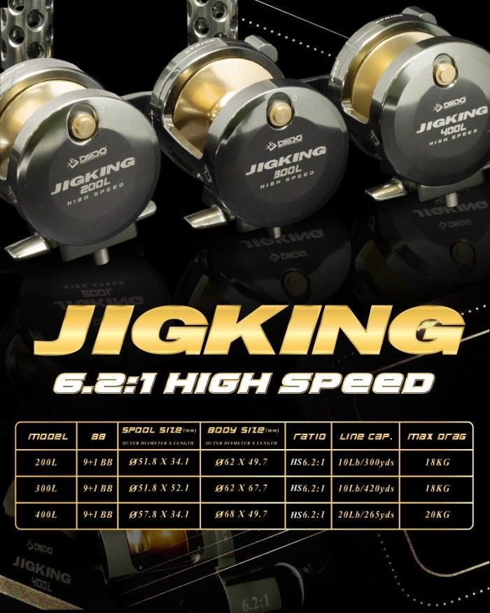 Reel Pancing OH Daido JIGKING HS 6.2:1 200L 300L 400L 9+1 Bearing - HS 200L