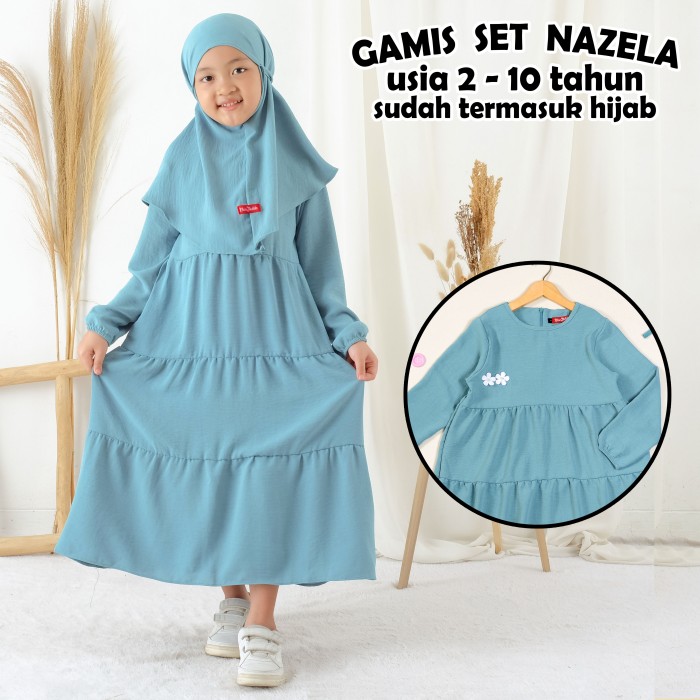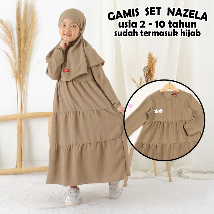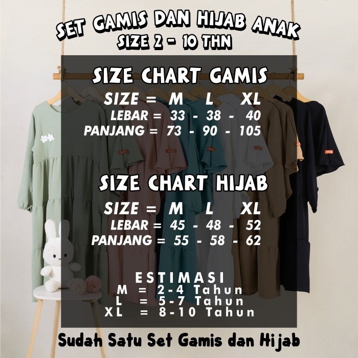GAMIS ANAK DAN HIJAB 2-10 TAHUN SETELAN GAMIS ANAK ONE SET BAJU MUSLIM - SET GAMIS PINK, L 5-7 THN