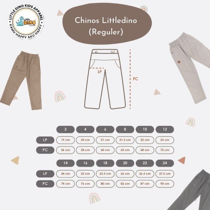 CELANA CHINOS REGULER PANJANG ANAK LAKI-LAKI/PEREMPUAN LITTLE DINO - F DINO BROWN, 14