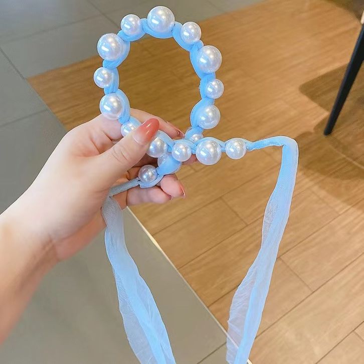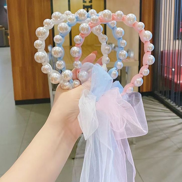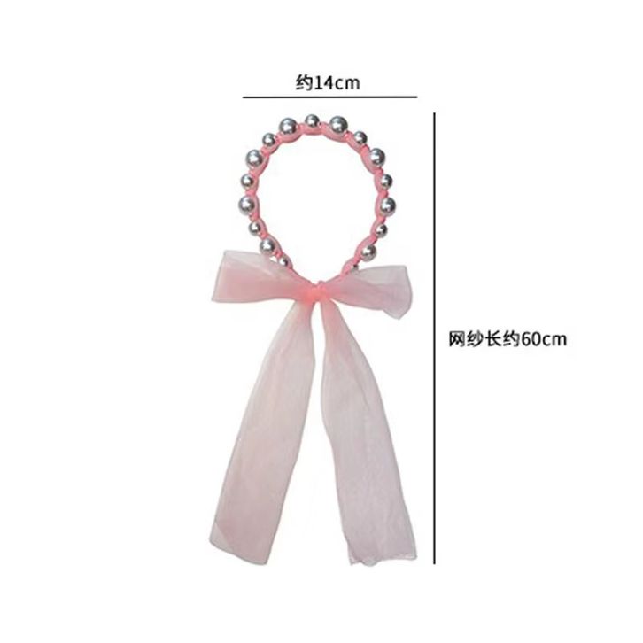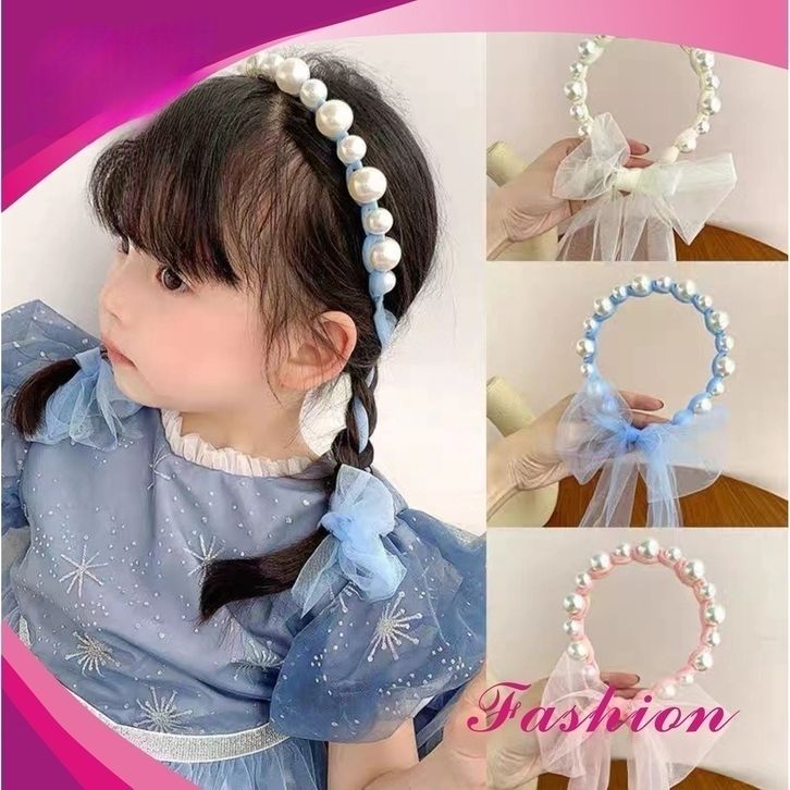 Bandana Terbaru Mutiara Pita Tulle Panjang Bisa Diikat Gaya Korea Bando Anak Import