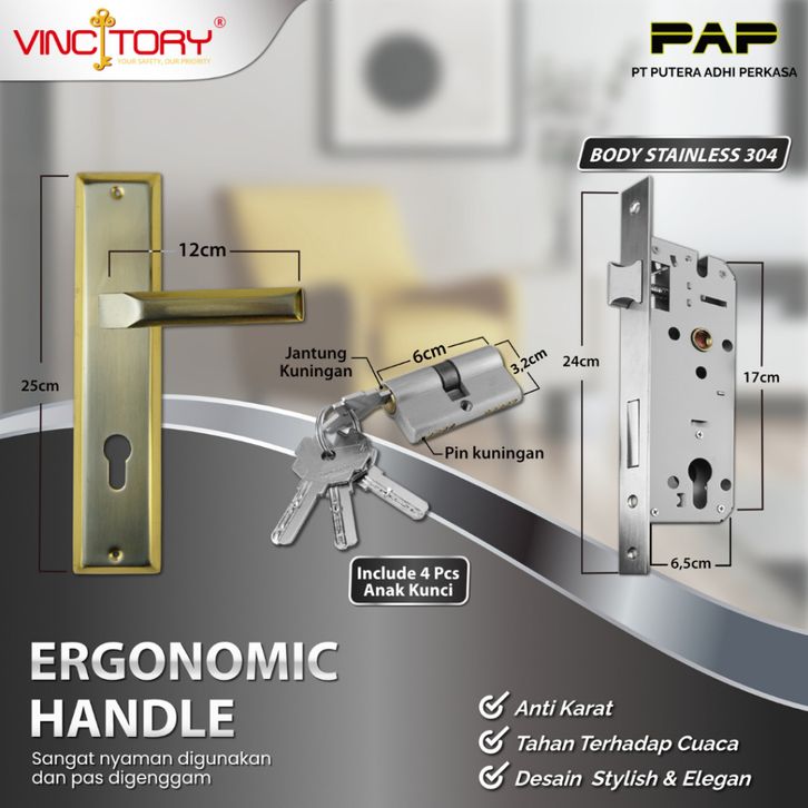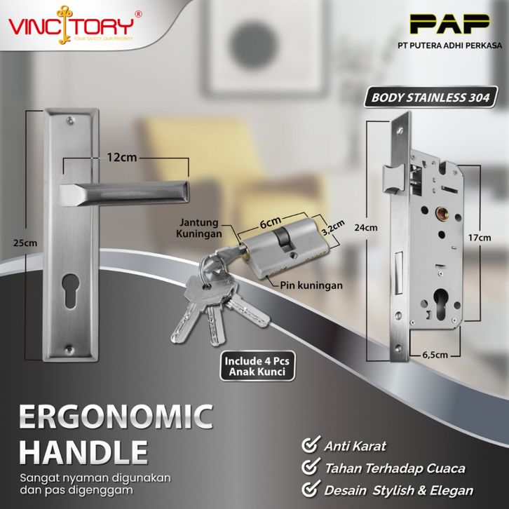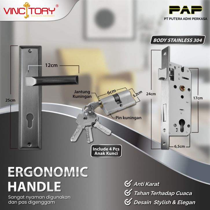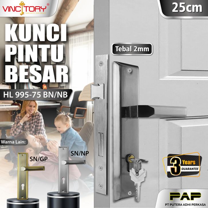 Vincitory Hendel Pintu Minimalis Kunci Rumah Set Besar 25 cm Handel Handle Gagang Kamar HL 995-75