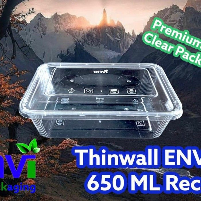 Terlaris Thinwall 650 ml + Tutup Warna Clear Merek ENVI PREMIUM HARGA 25 PCS - Kuning Clear Keren