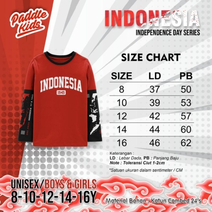 KAOS PANJANG ANAK KEMERDEKAAN KAOS KEMERDEKAAN INDEPENDENCE KAOS ANAK PADDLEKIDS 6-15 TAHUN - B, 8(6-7TH)