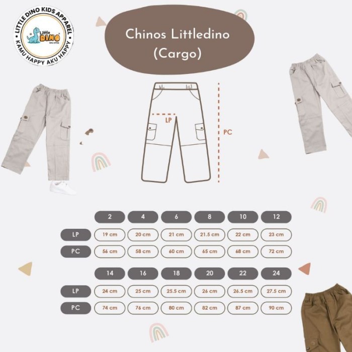 CELANA PANJANG ANAK CHINO CARGO LITTLE DINO 7-15 TAHUN - 14, BLACK