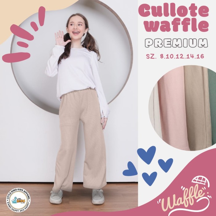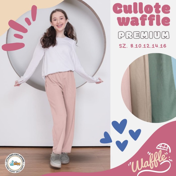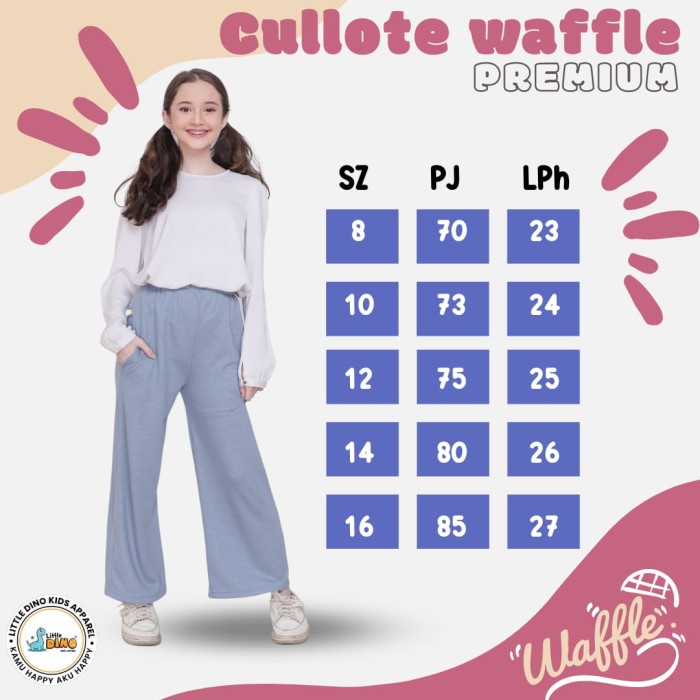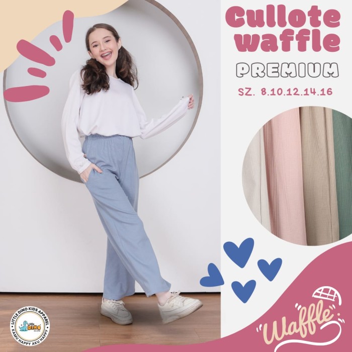 CELANA KULOT WAFFLE ANAK REMAJA TANGGUNG 7-15 TAHUN - NAVY, 8(7-8TH)