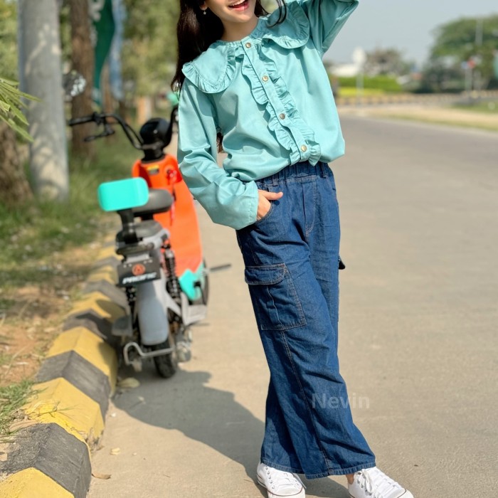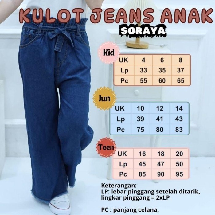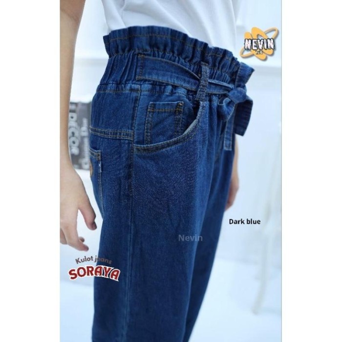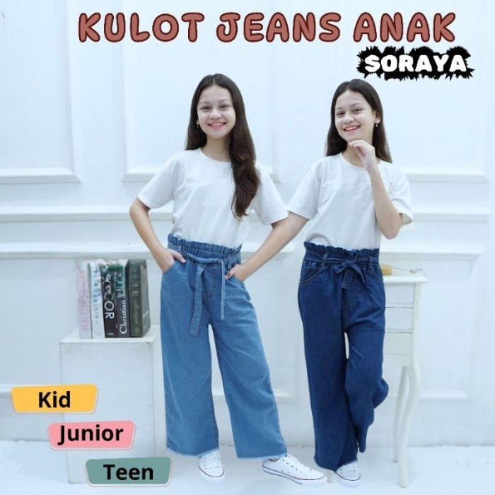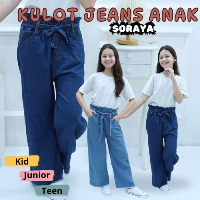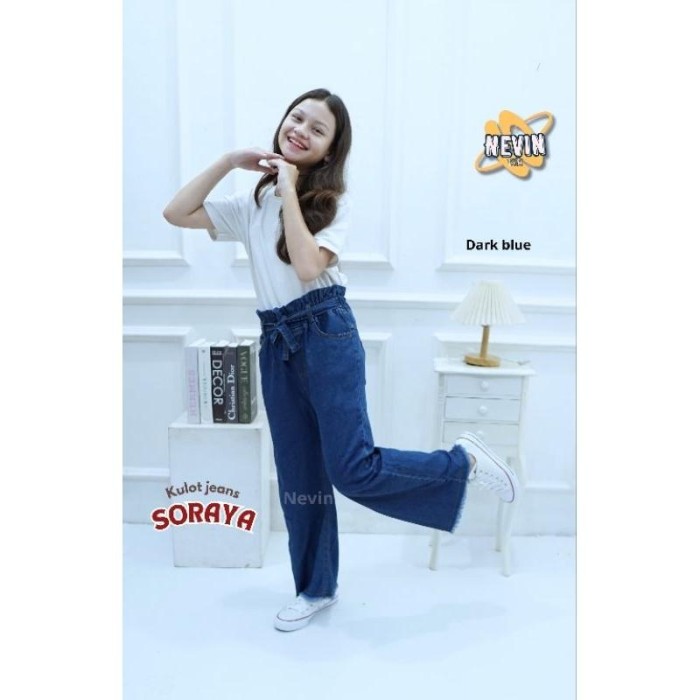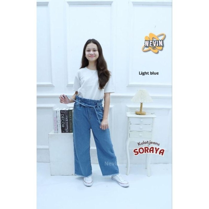 CELANA KULOT JEANS ANAK TANGGUNG REMAJA CELANA JEANS ANAK PEREMPUAN SORAYA 7-20 TAHUN - BIRU TUA, 10(7-9TH)