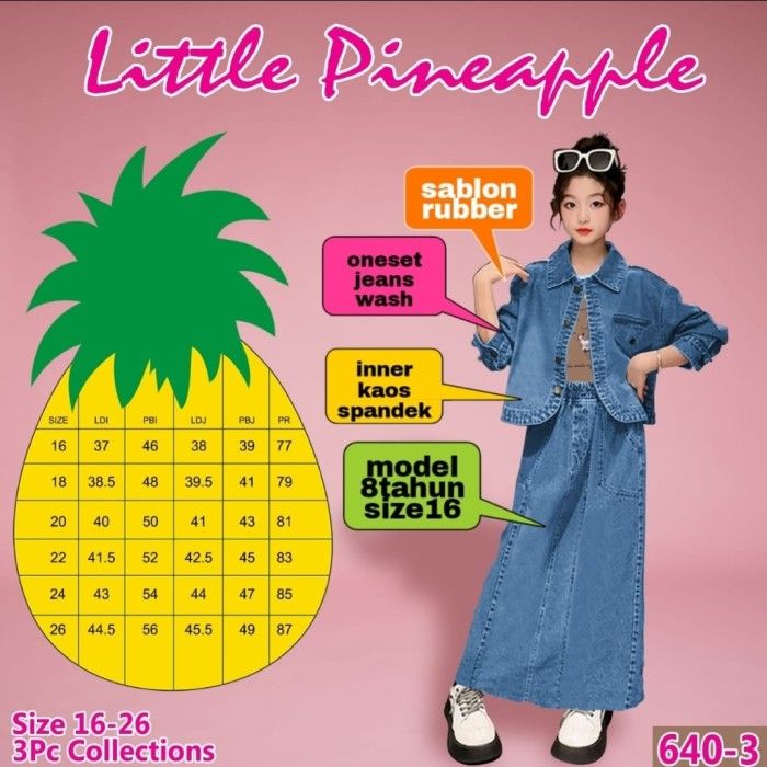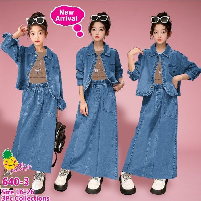 Jaket Anak 9-14th 640 Little Pineapple 3in1 Baju Pakaian Set Setelan Anak Perempuan Cewek Cewe Rok Jaket Jeans Junior J