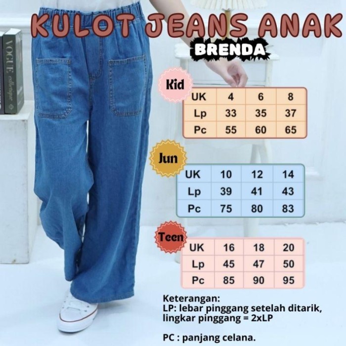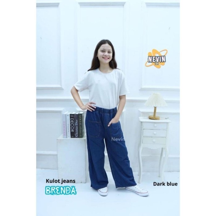 CELANA KULOT JEANS ANAK TANGGUNG REMAJA CELANA JEANS ANAK PEREMPUAN BRENDA 7-20 TAHUN - BRENDA BIRU TUA, 10(7-9TH)