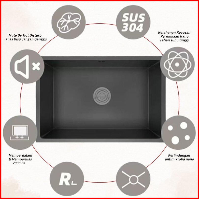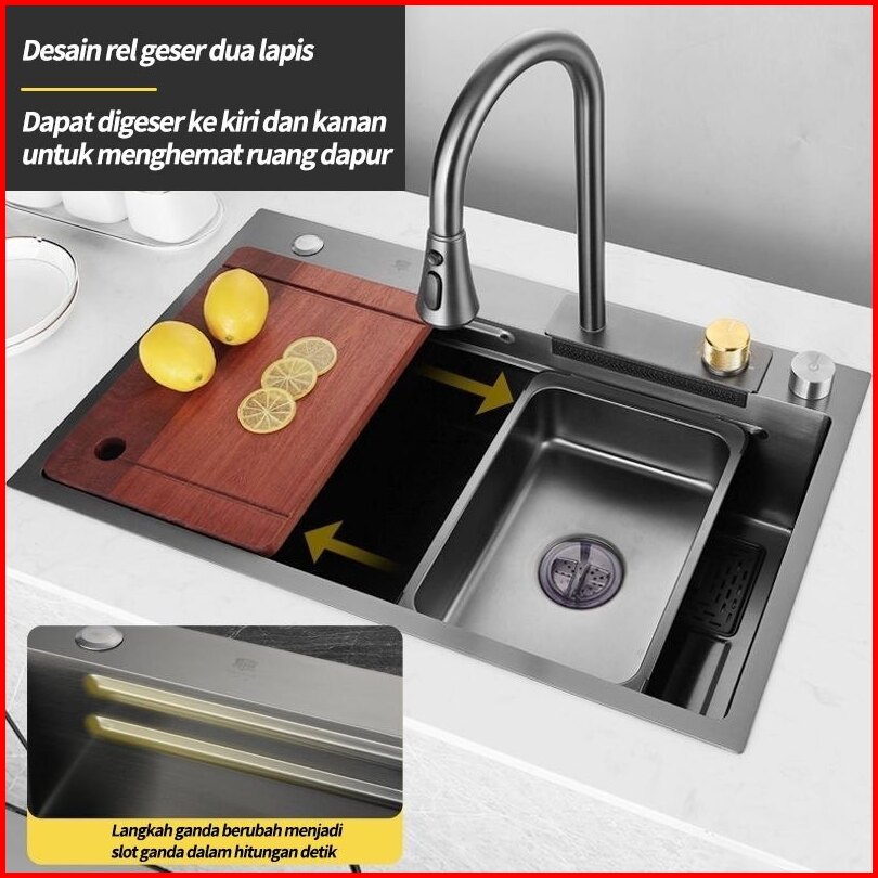 Reaim Set Lengkap Kitchen Sink Wastafel Stainless Hitam 304 Paket Kitchen Sink Perak Wastafel Cuci Piring Stainless Sink
