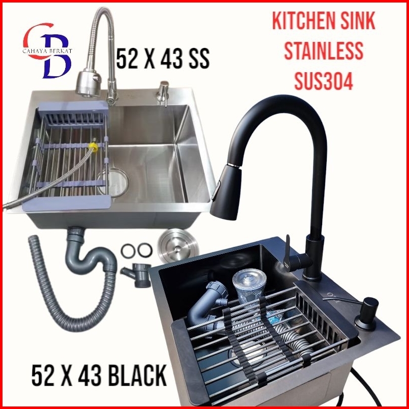 Kitchen Sink 5243 Hitam Perak Wastafel Bak Cuci Piring Stainless Sus304 Tebal Promo
