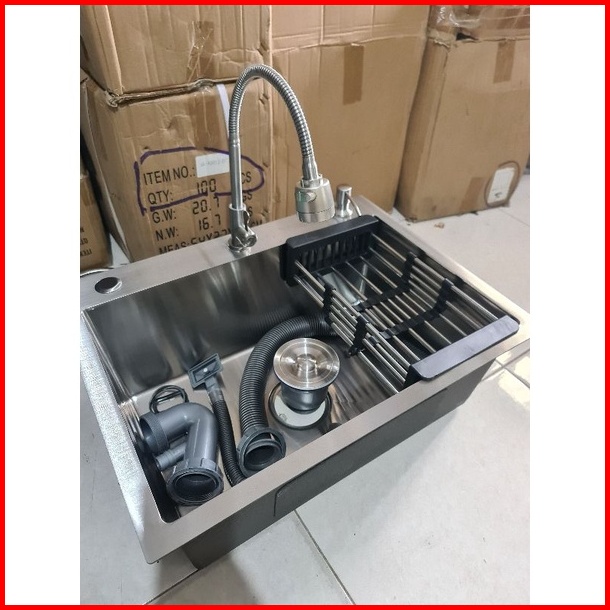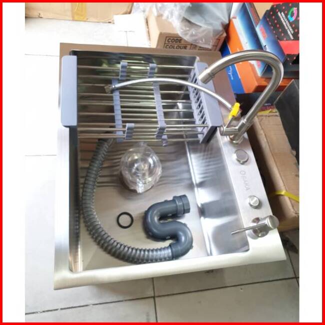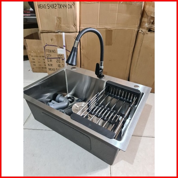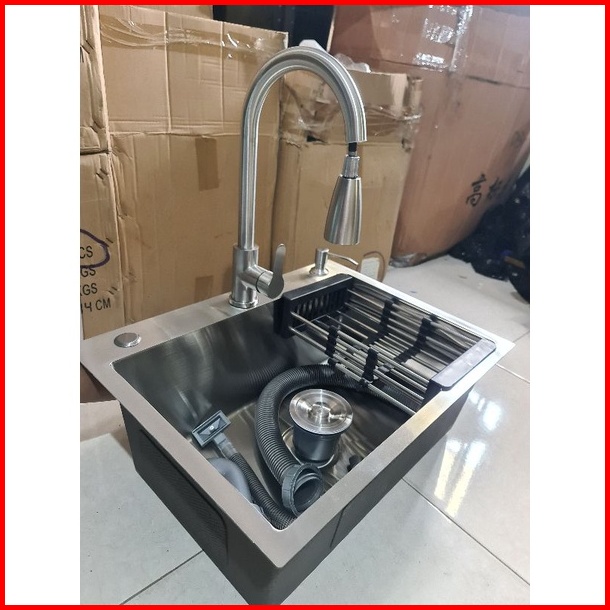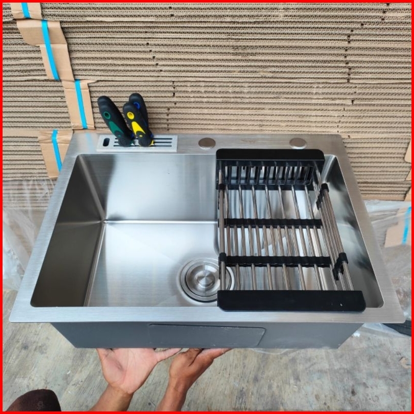 Kitchen Sink Stainless 6045 Wastafel Bak Cuci Piring Stainless Sus304 Tebal 60cm Paket Komplit