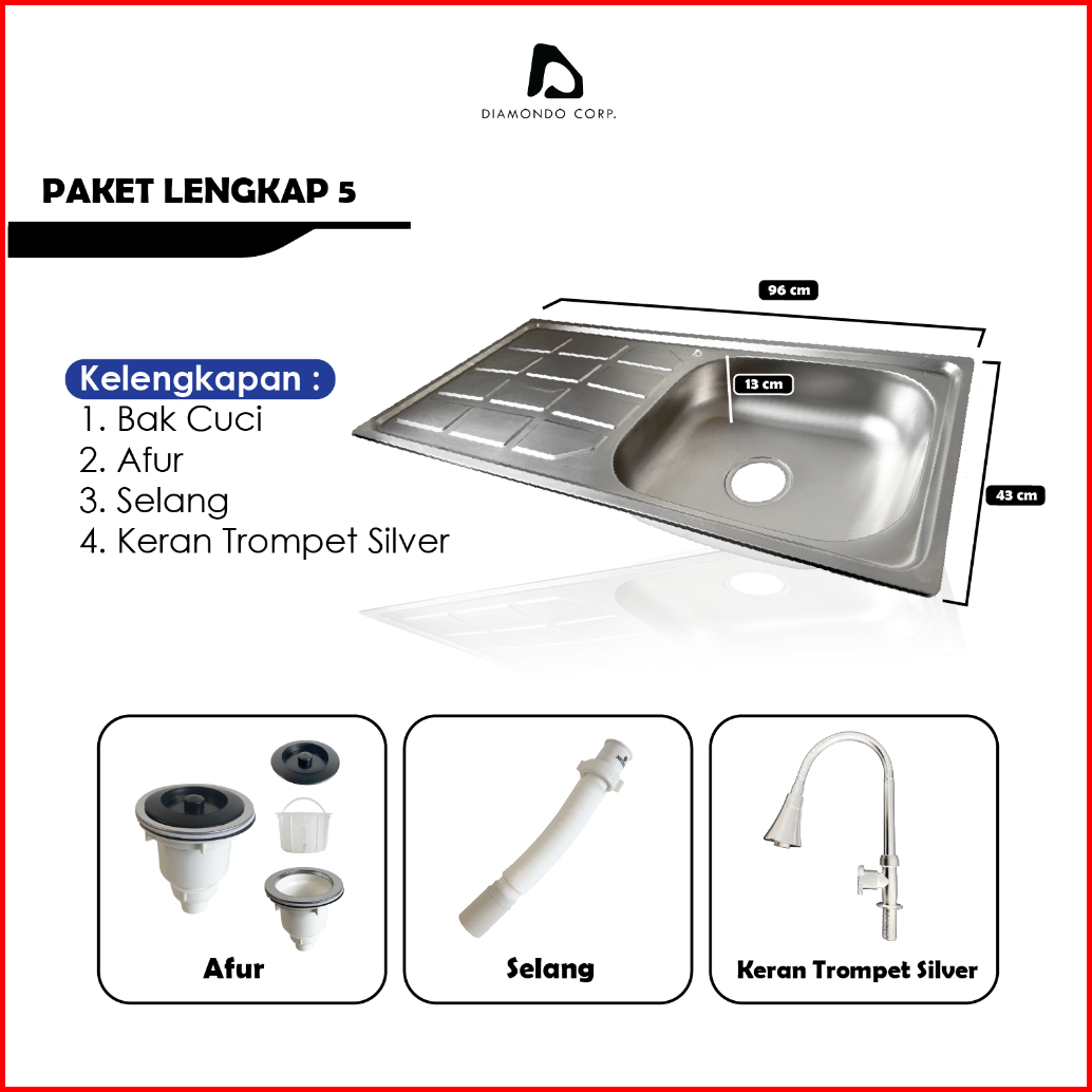 Bak Cuci Piring Wastafel Sink Stainless Steel Dapur Tebal Satu Lubang Kitchen Sink Set Ukuran 96cm X 40 Cm Lengkap Termu