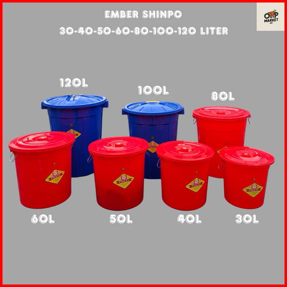 Shinpo - Ember Plastik Tutup 30-40-50-60-80-100-120 Liter Ember Shinpo Tebal Kuat Berkualitas
