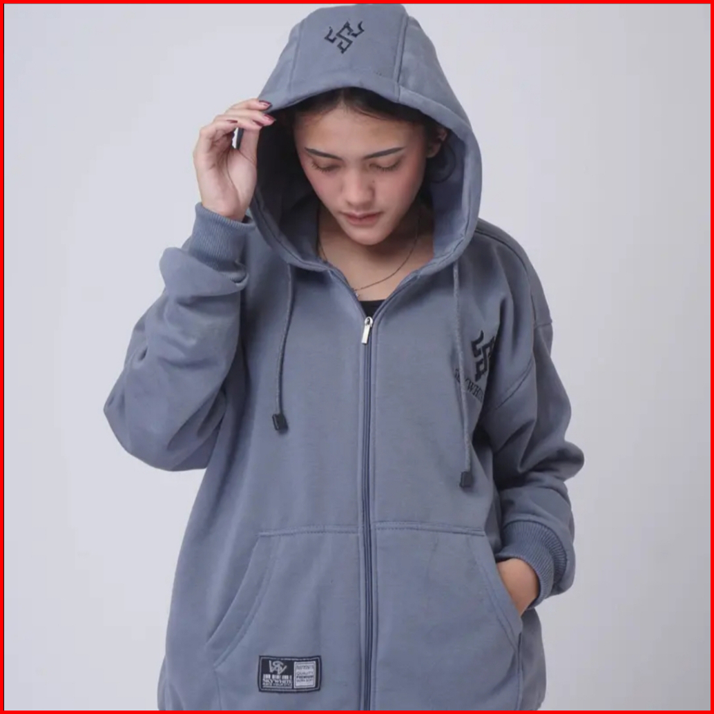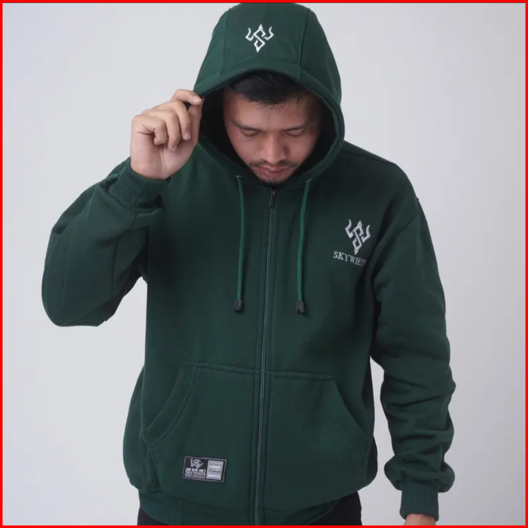 Sky White Hoodie Sweater Zipper Pria Wanita Bahan Tebal Bordir Timbul Jaket Pria Wanita Viral Terbaru